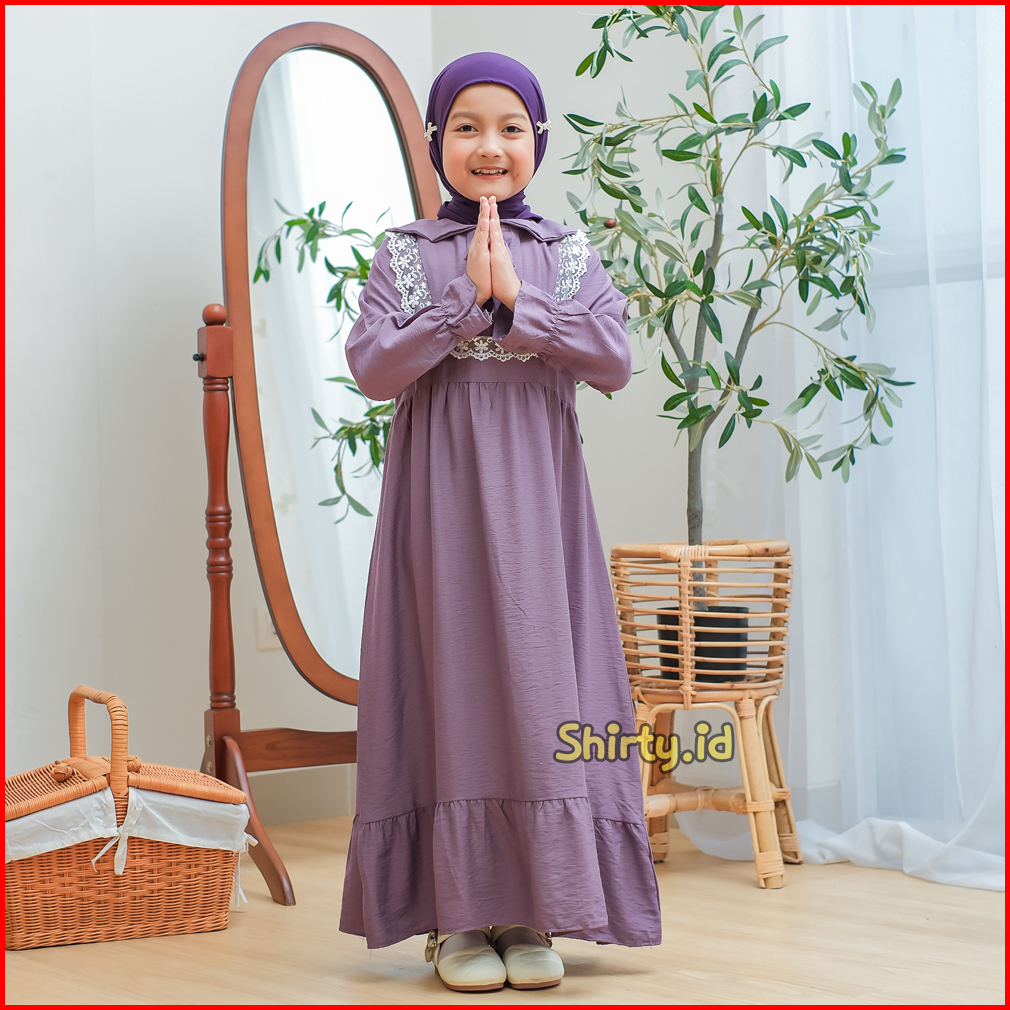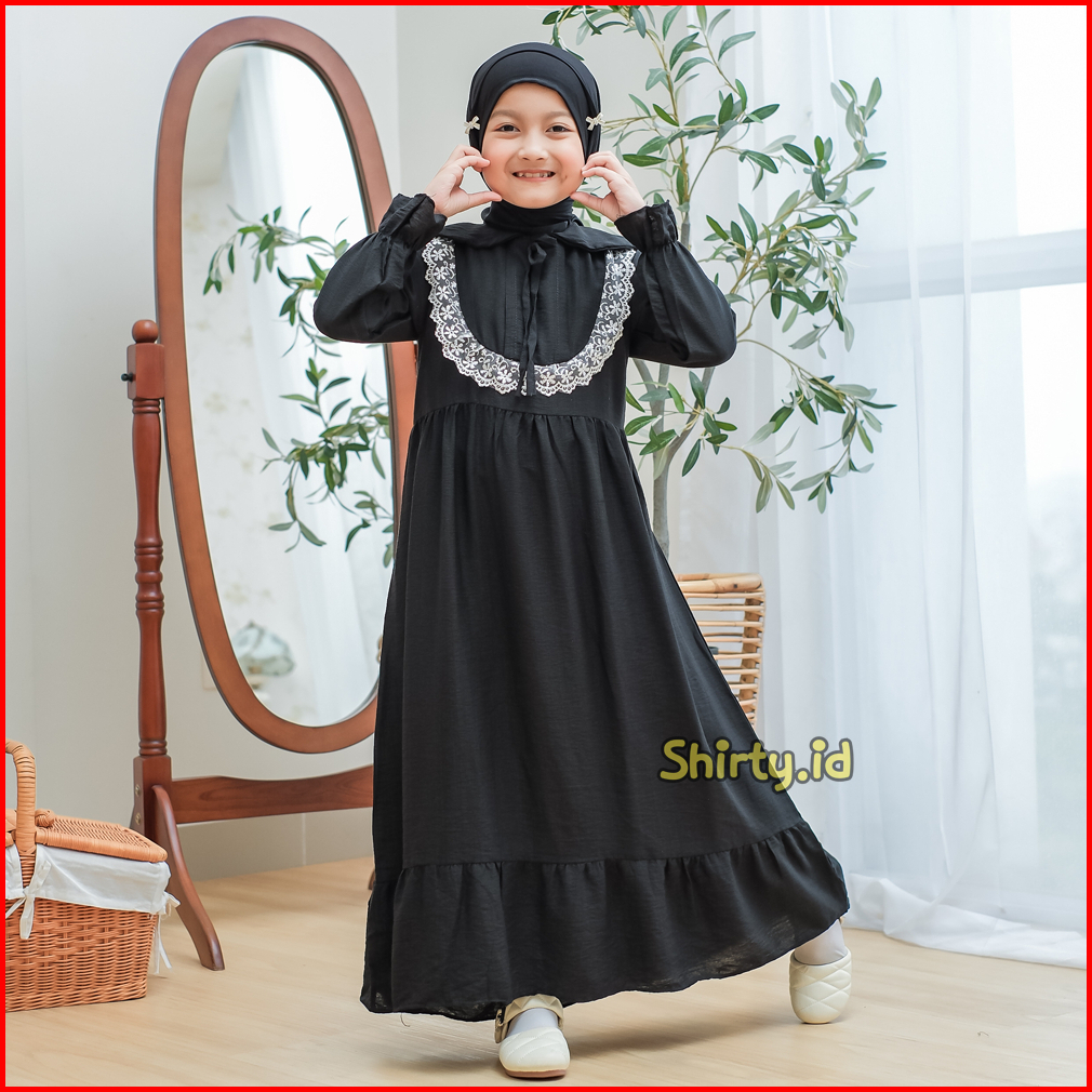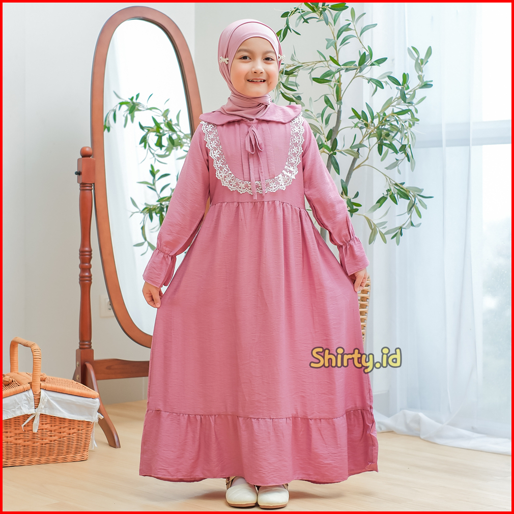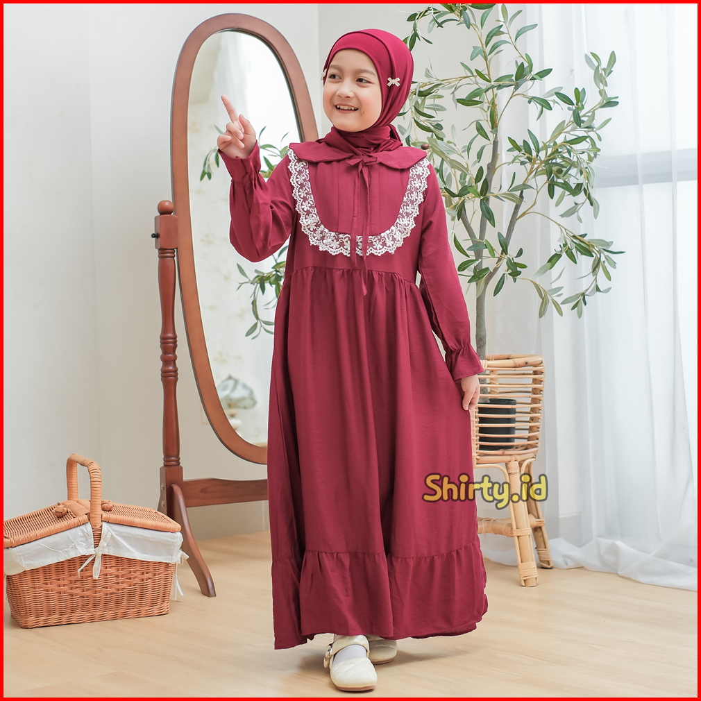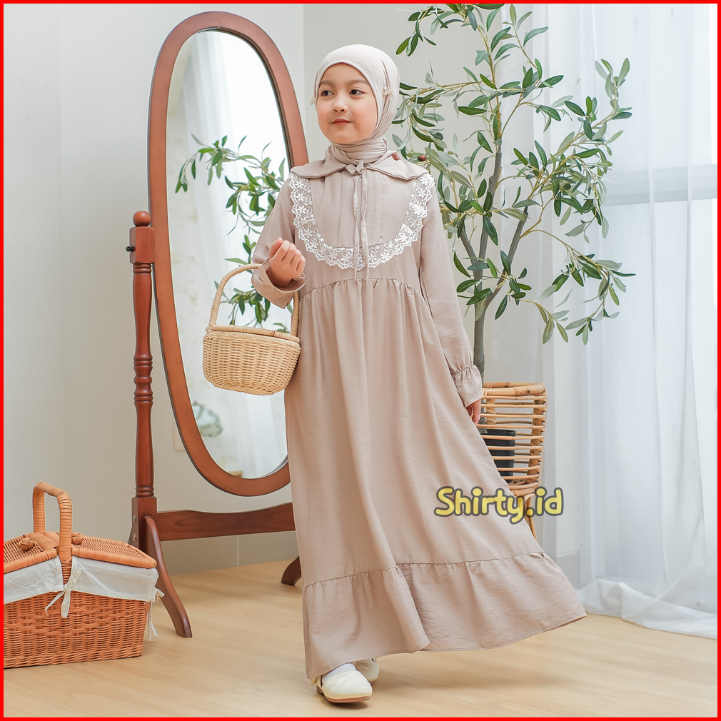 Shirty.id - Bella Gamis Anak Perempuan Pita Polo Linen Premium Leherdaun Renda Motif Usia 1-13 Tahun