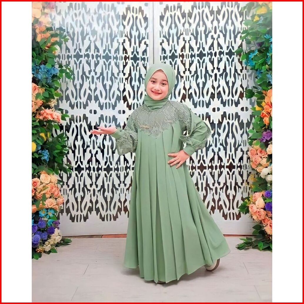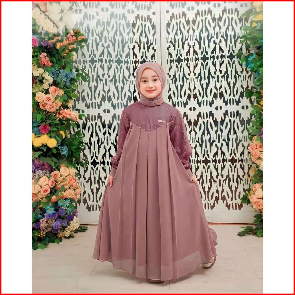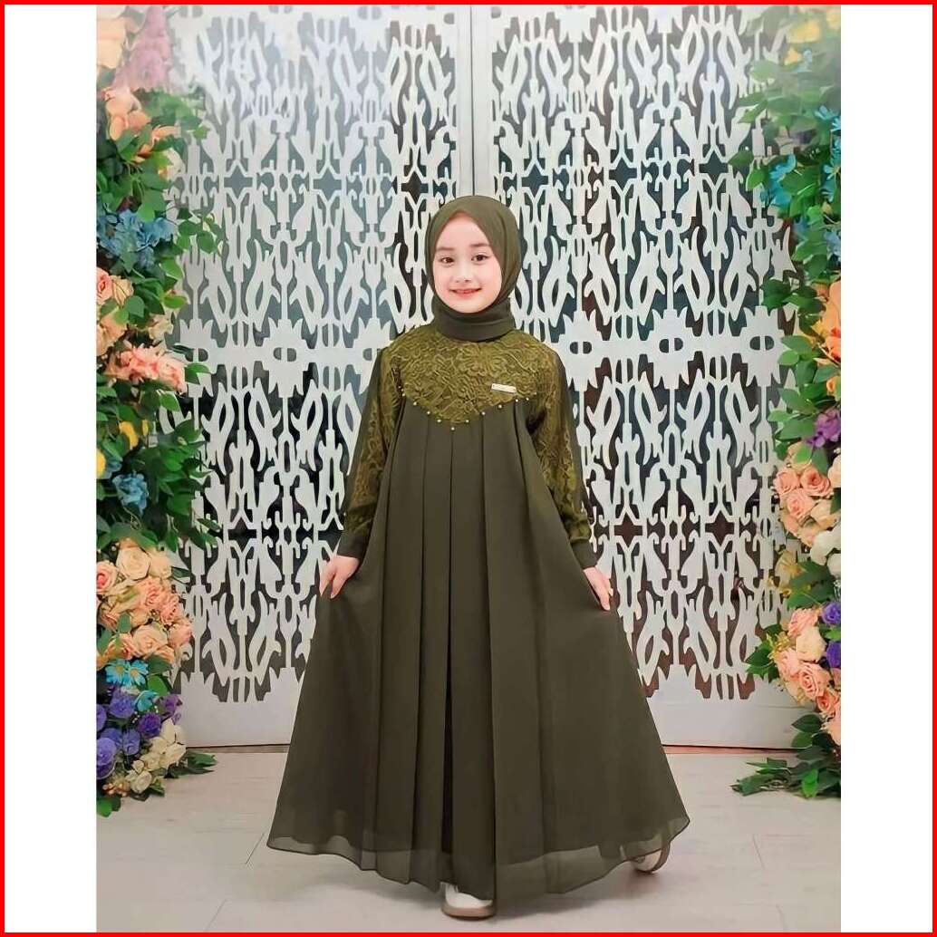Inara Kids Gamis Anak Perempuan Set Hijab Syari Dress Brukat Kondangan Anak Terbaru Usia 5-13 Tahun