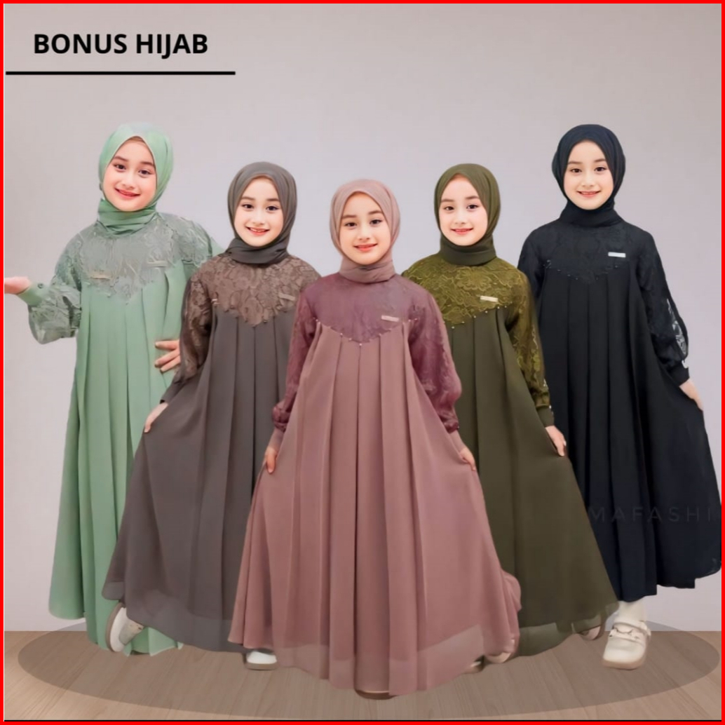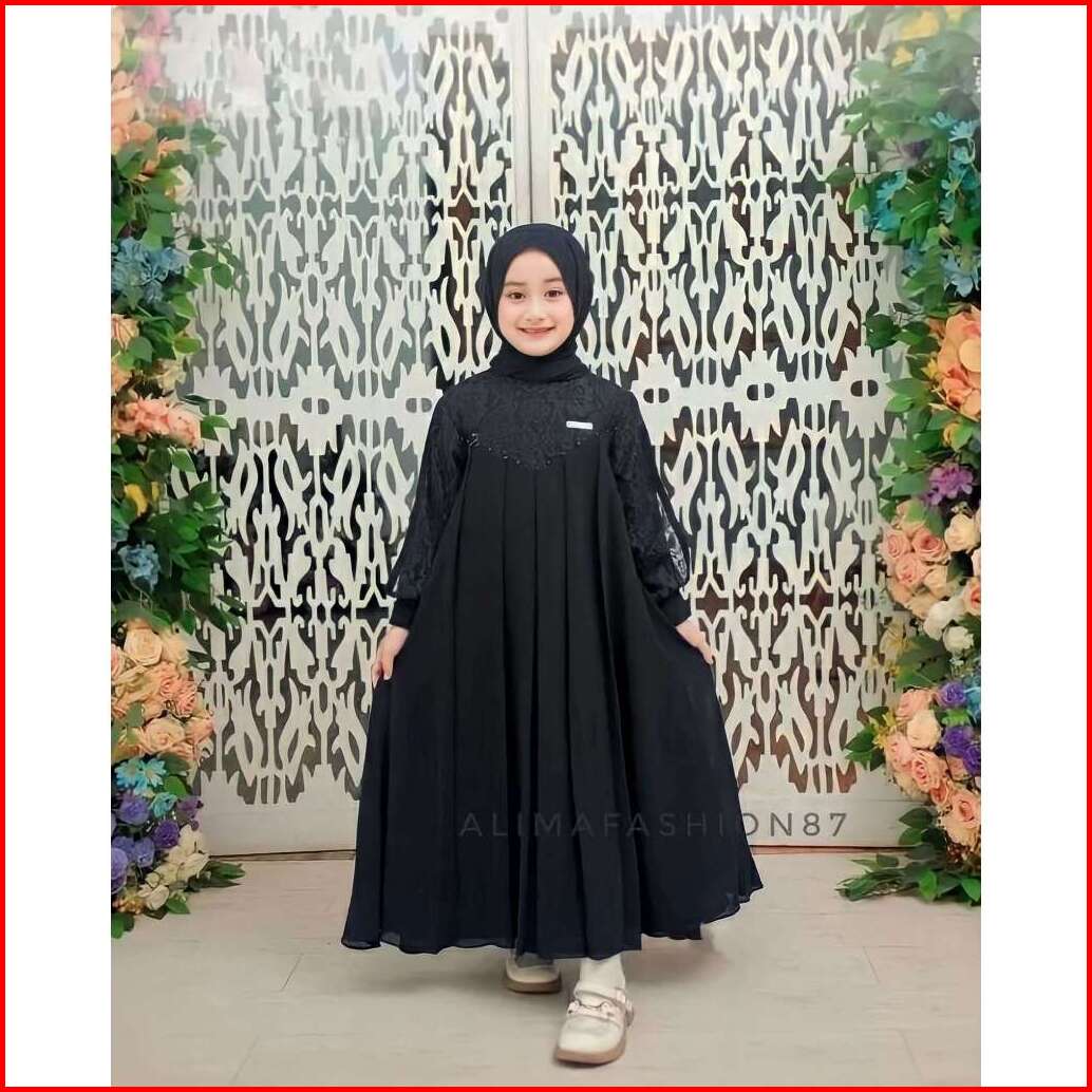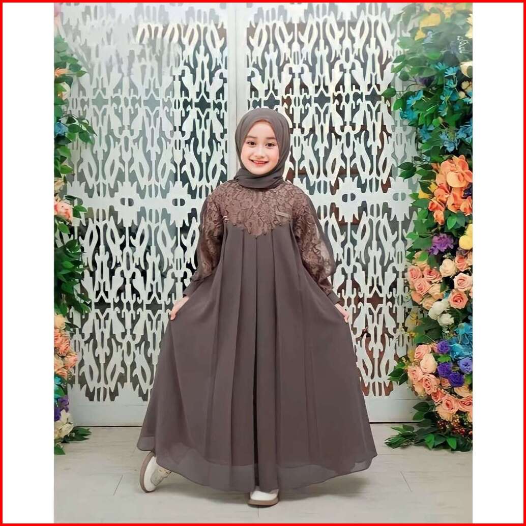 Inara Kids Gamis Anak Perempuan Set Hijab Syari Dress Brukat Kondangan Anak Terbaru Usia 5-13 Tahun