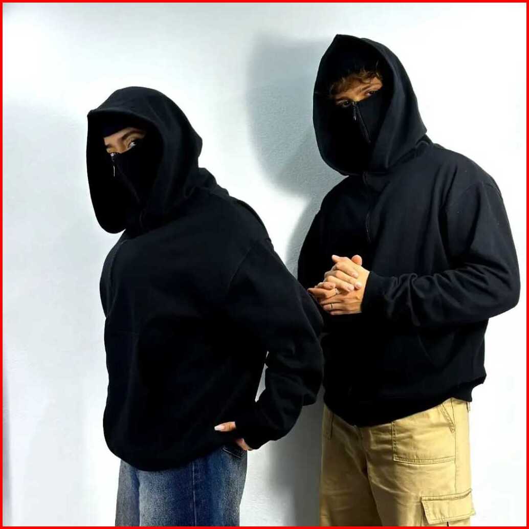 The Made Hoodie Balaclava Zipper Jaket Hoodie Boxy Hitam Ninja Balaclava