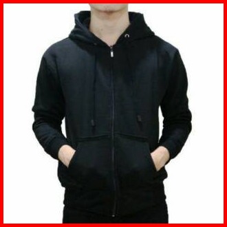 Jaket Hoodie Zipper Fleece Hitam M-xxl