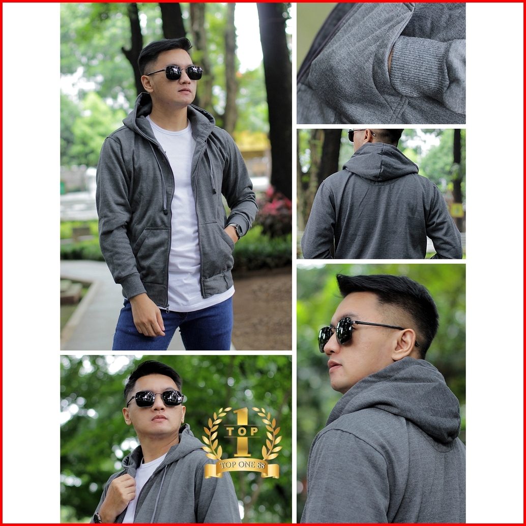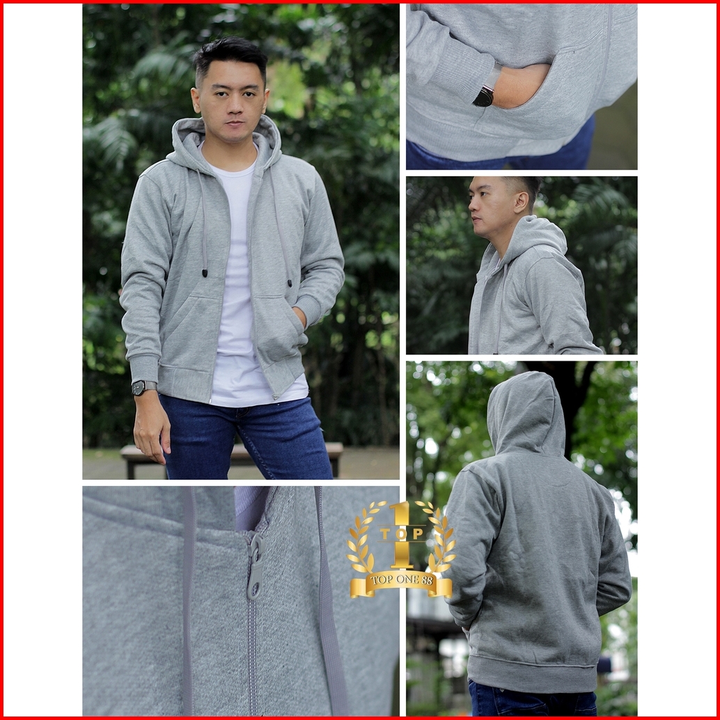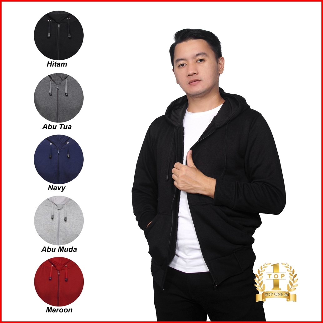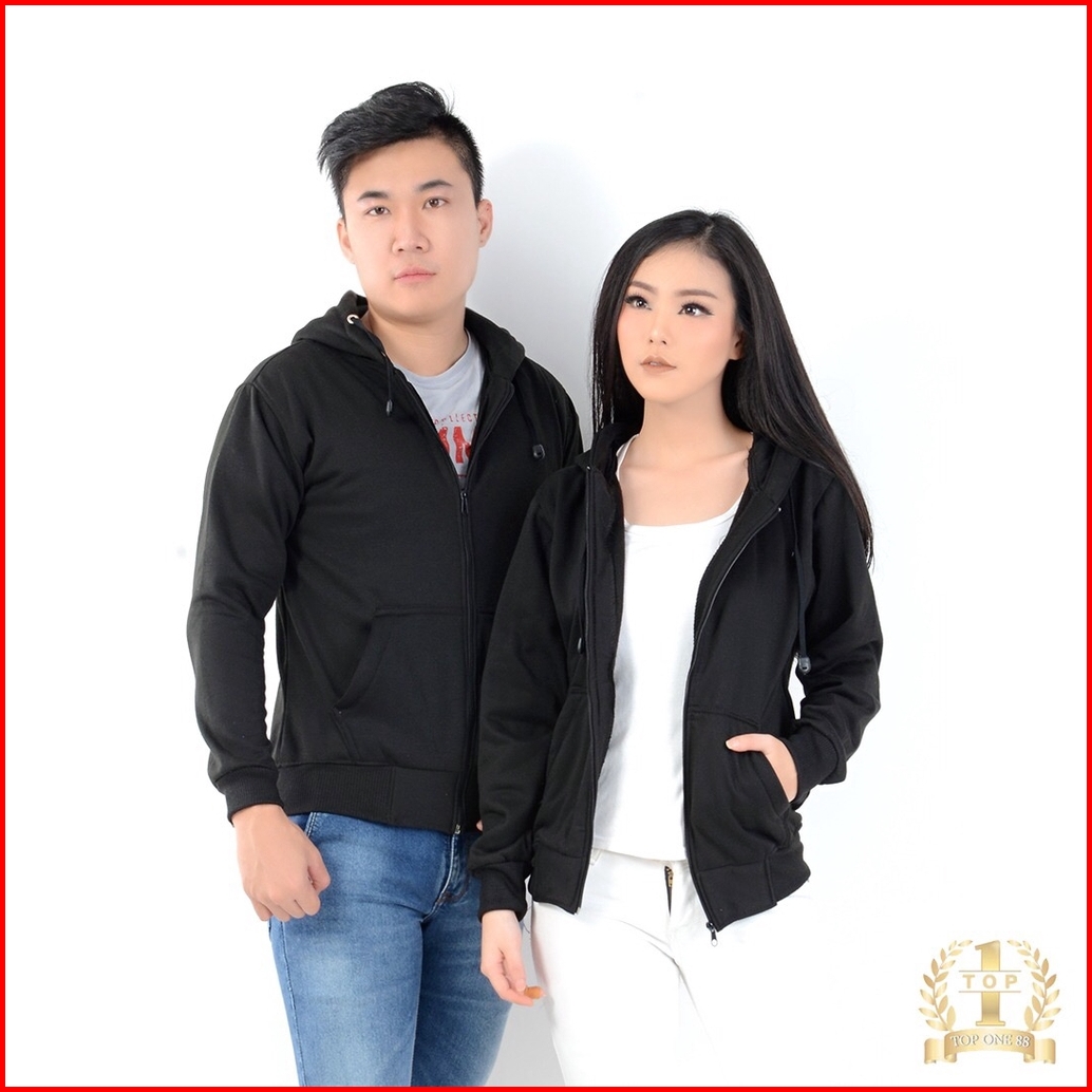 Luckyone Jaket Hoodie Zipper Polos Fleece Pria Wanita Dewasa