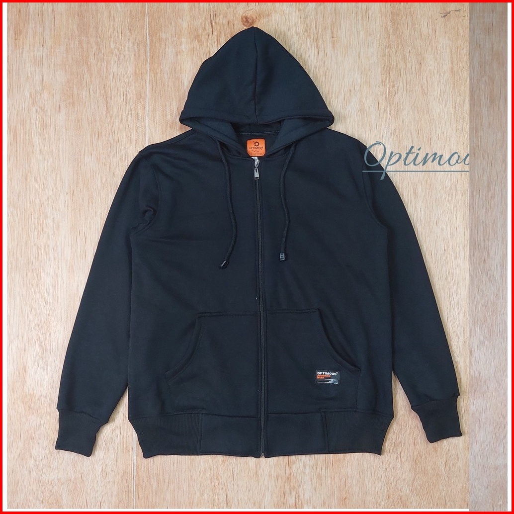 Hoodie Zipper Polos Hitam Distro Pria Wanita Bahan Tebal