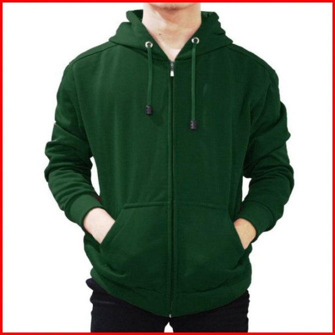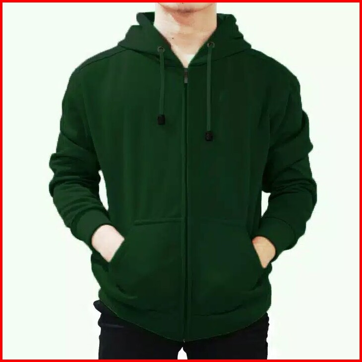 Jaket Hoodie Zipper Fleece Hijau Ukuran M-xxl