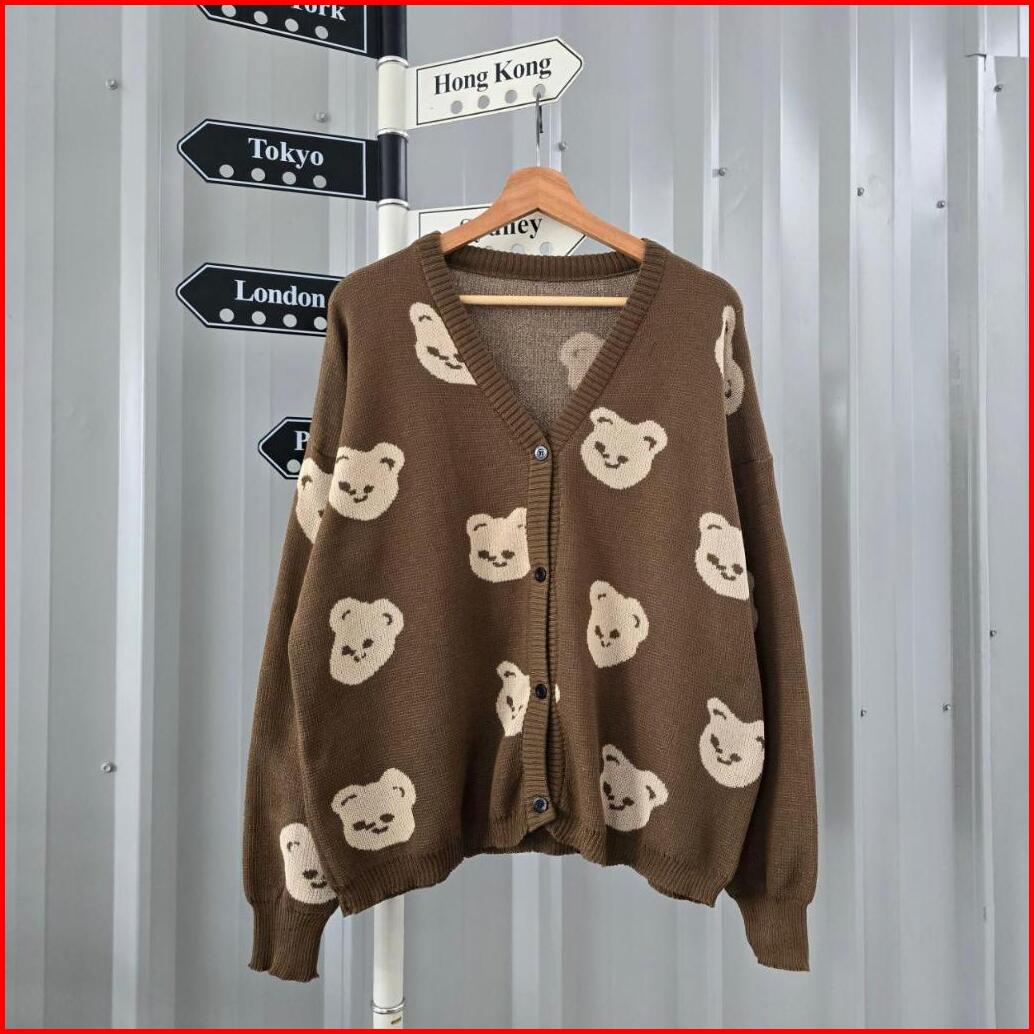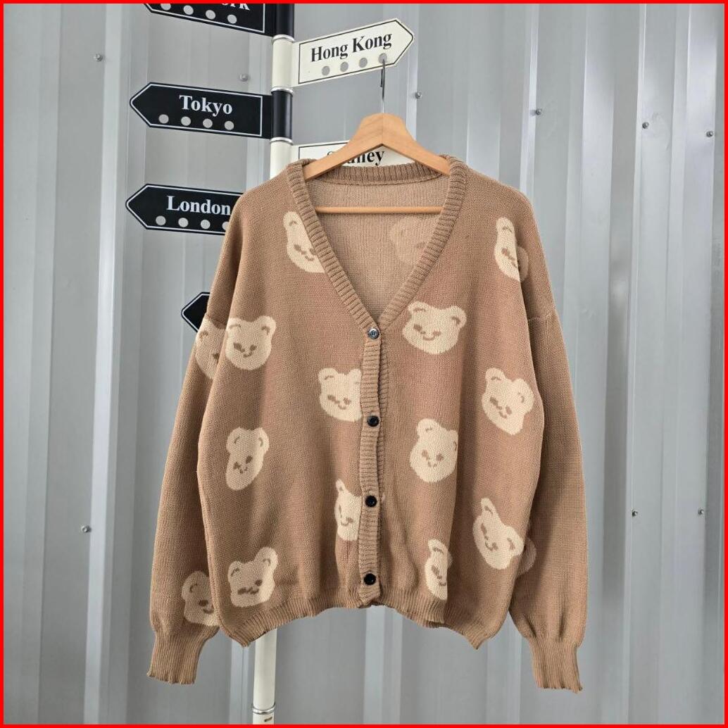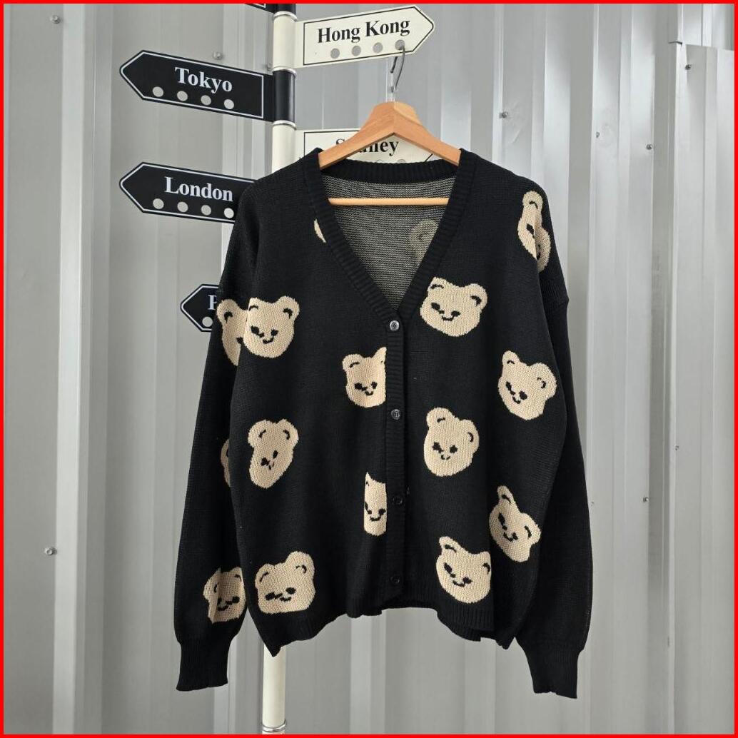 Kardigan Wanita Oversize - Head Bear Outher - Cardy Rajut Lucu