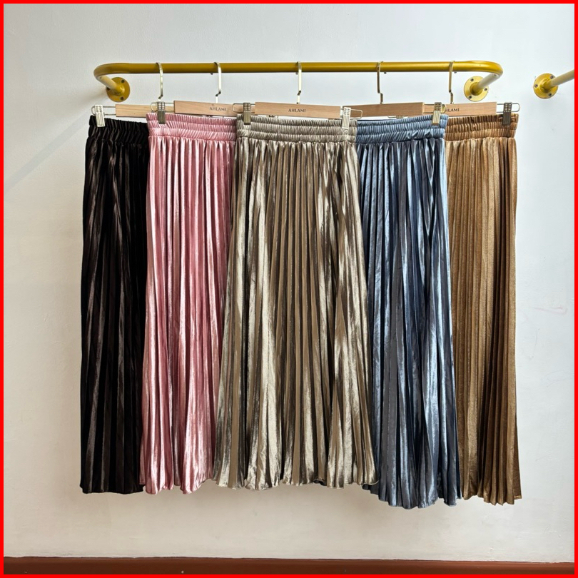 Ahlami- Rok Plisket Bludru Rok Plisket Panjang Bludru