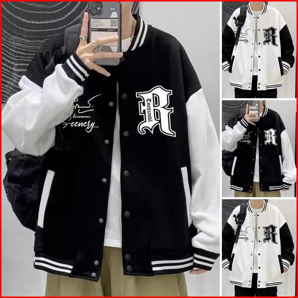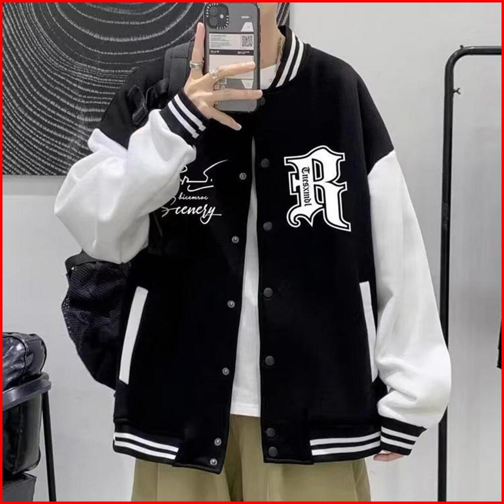 Jaket Korea - R Senory Baseball Black - Tebal - Pria Wanita
