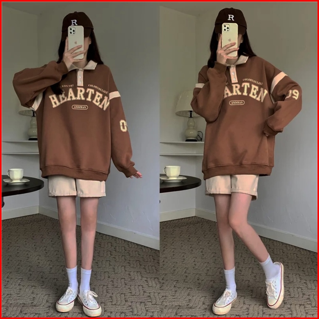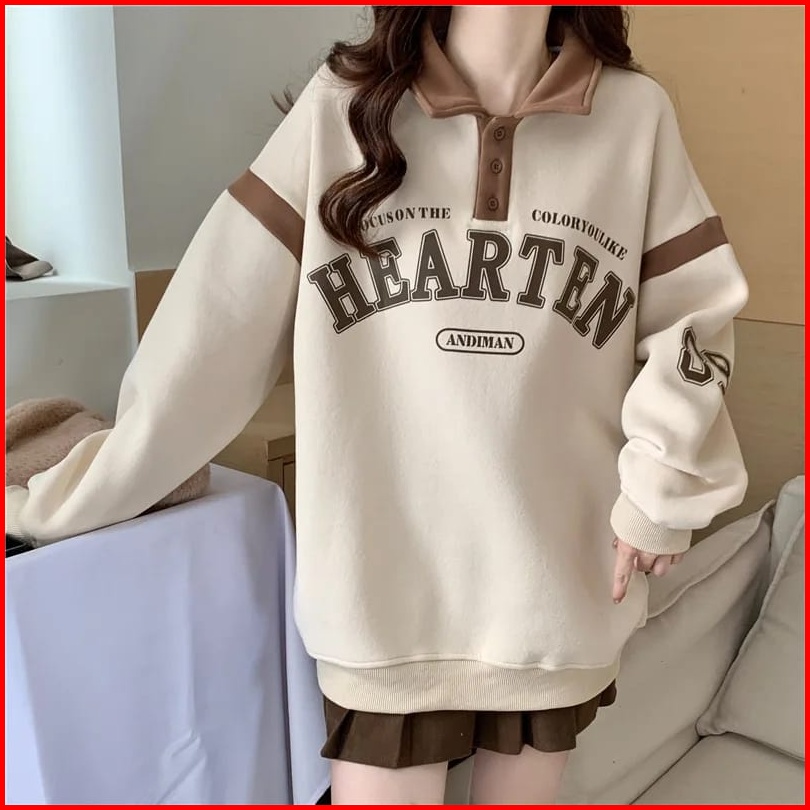 Sweatshirt Collar Hearten Wanita Terbaru Korea