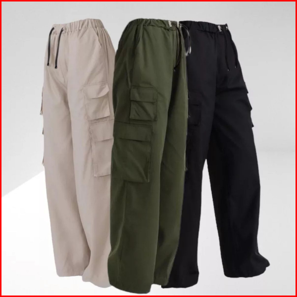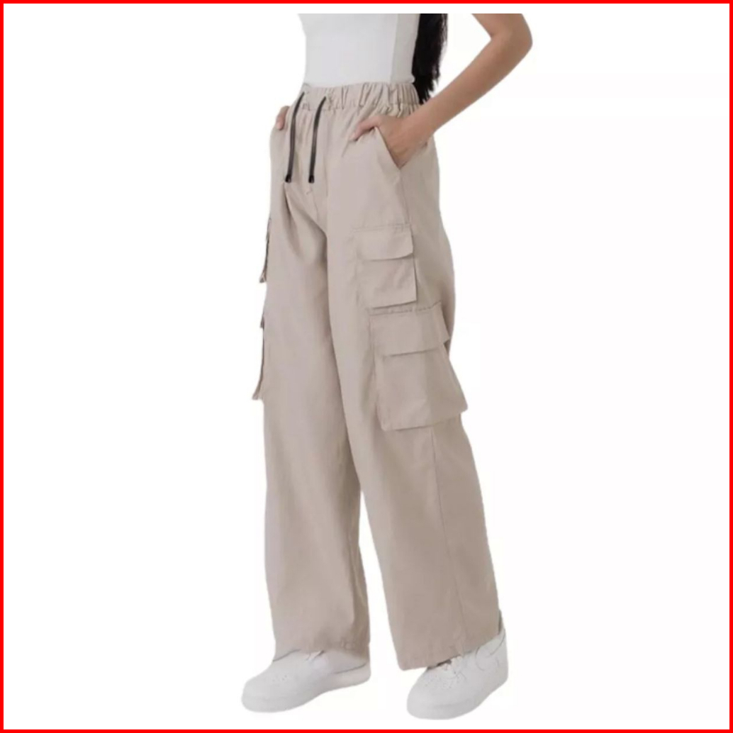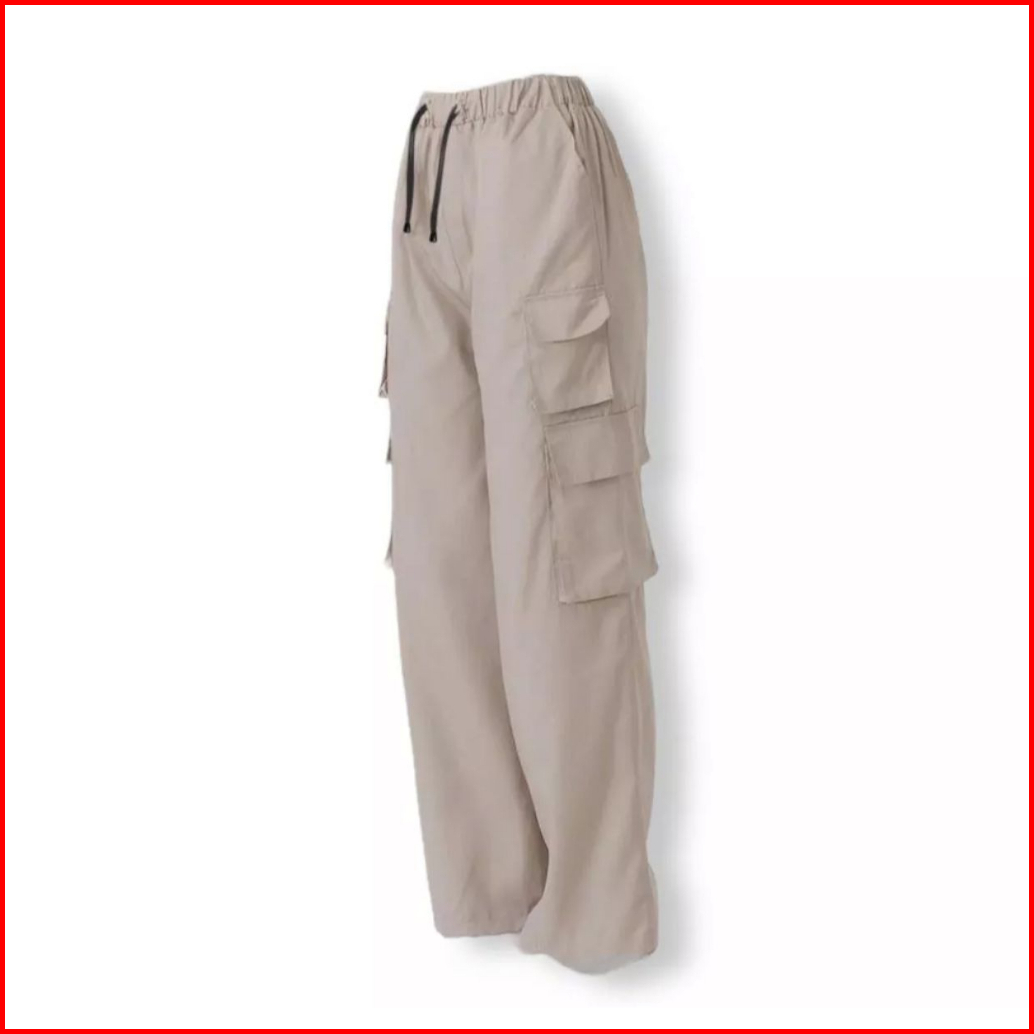 Celana Wanita Mini Pocket Cargo Pants Celana Loose Wanita Boyfriend