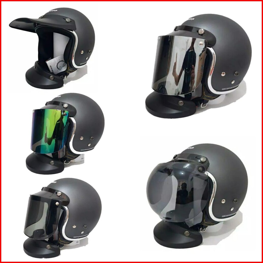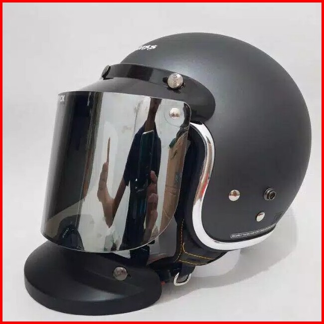 Helm Cargloss Retro Abu Tua Gunmet Doff List Chrome