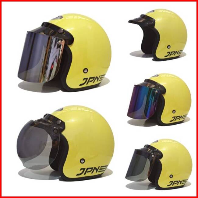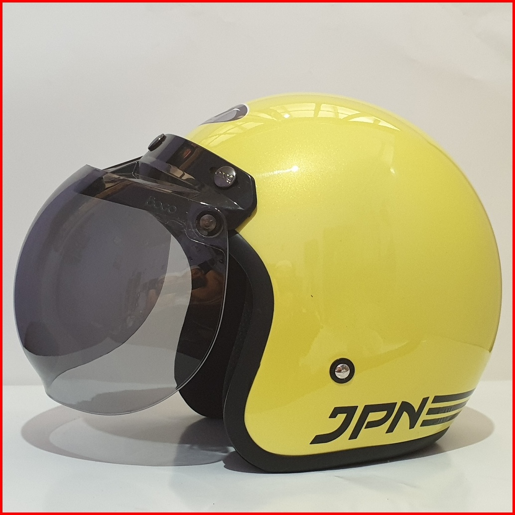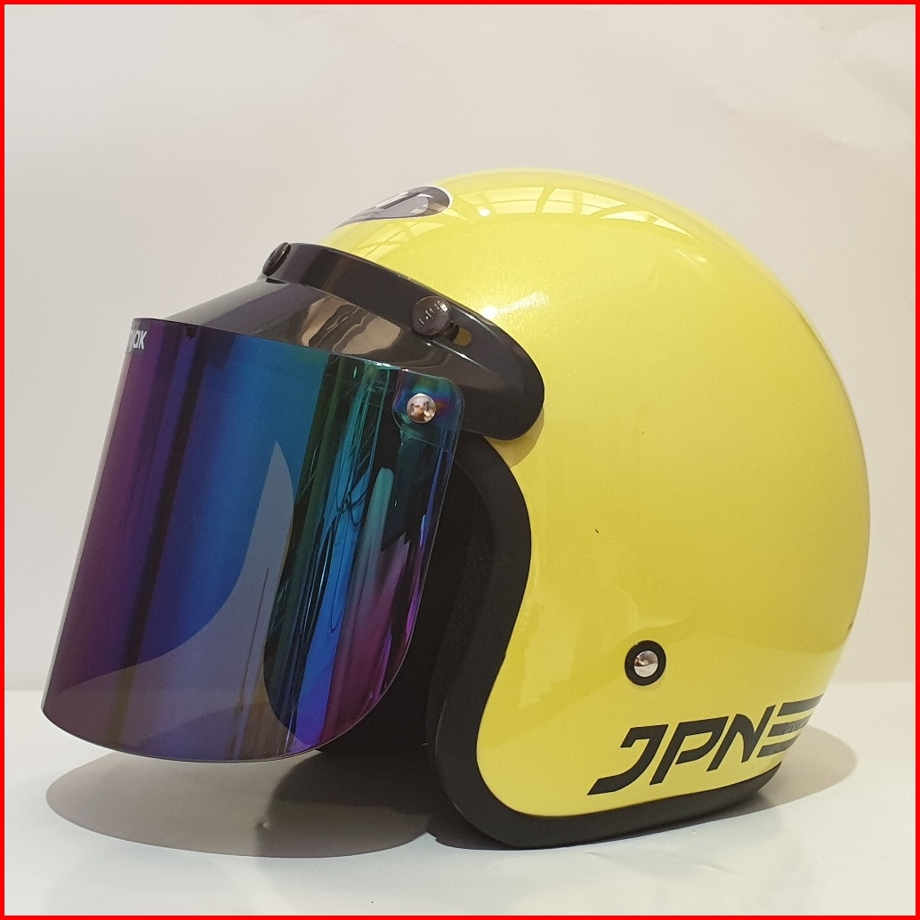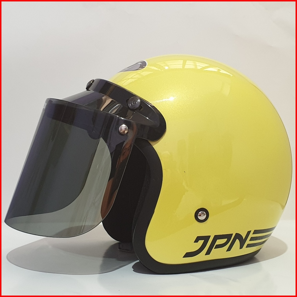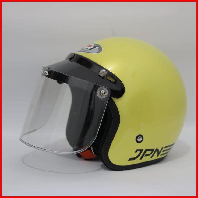 Helm Retro Jpn Kuning Lemon Glossy Kaca Datar Flat Visor