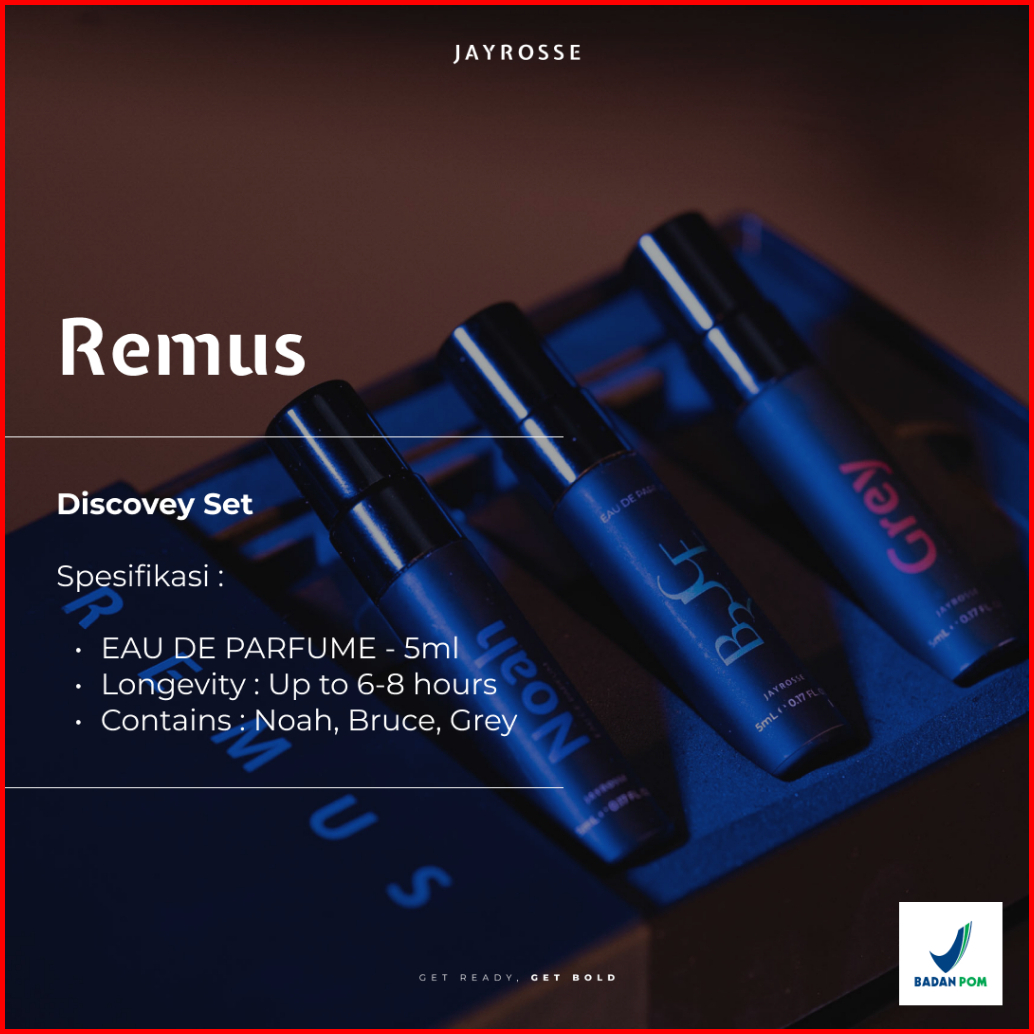 Jayrosse Perfume Remus Discovery Set Noah - Bruce - Grey Parfum Pria Best Seller Tahan Lama