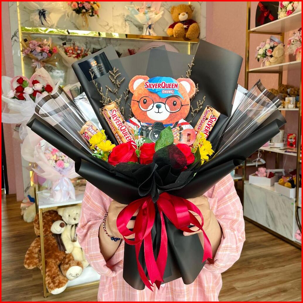 Buket Bunga Beruang Silverqueen Valentine Kado Romantis Kado Ulang Tahun Kado Anniversary