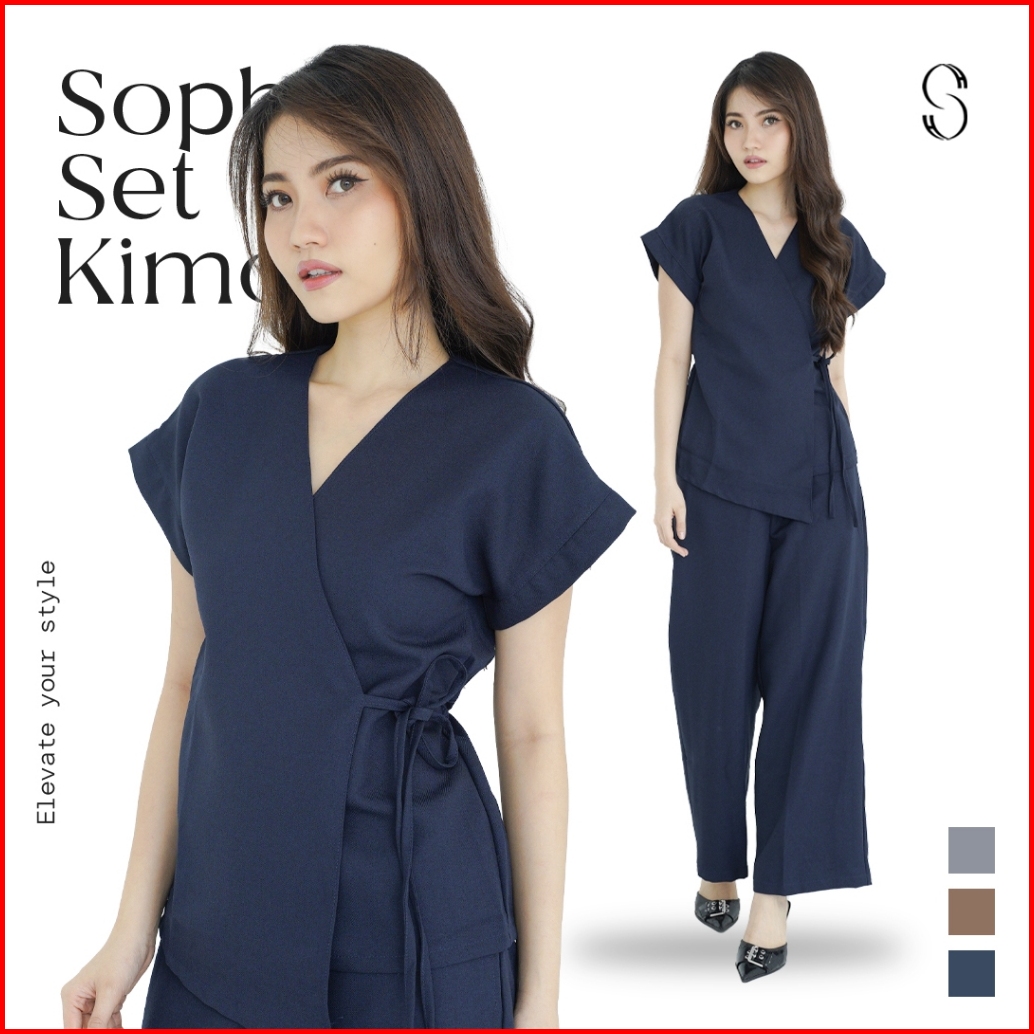 Halostylo Sophia Set Setelan Wanita Atasan Kimono Celana Kulot Panjang