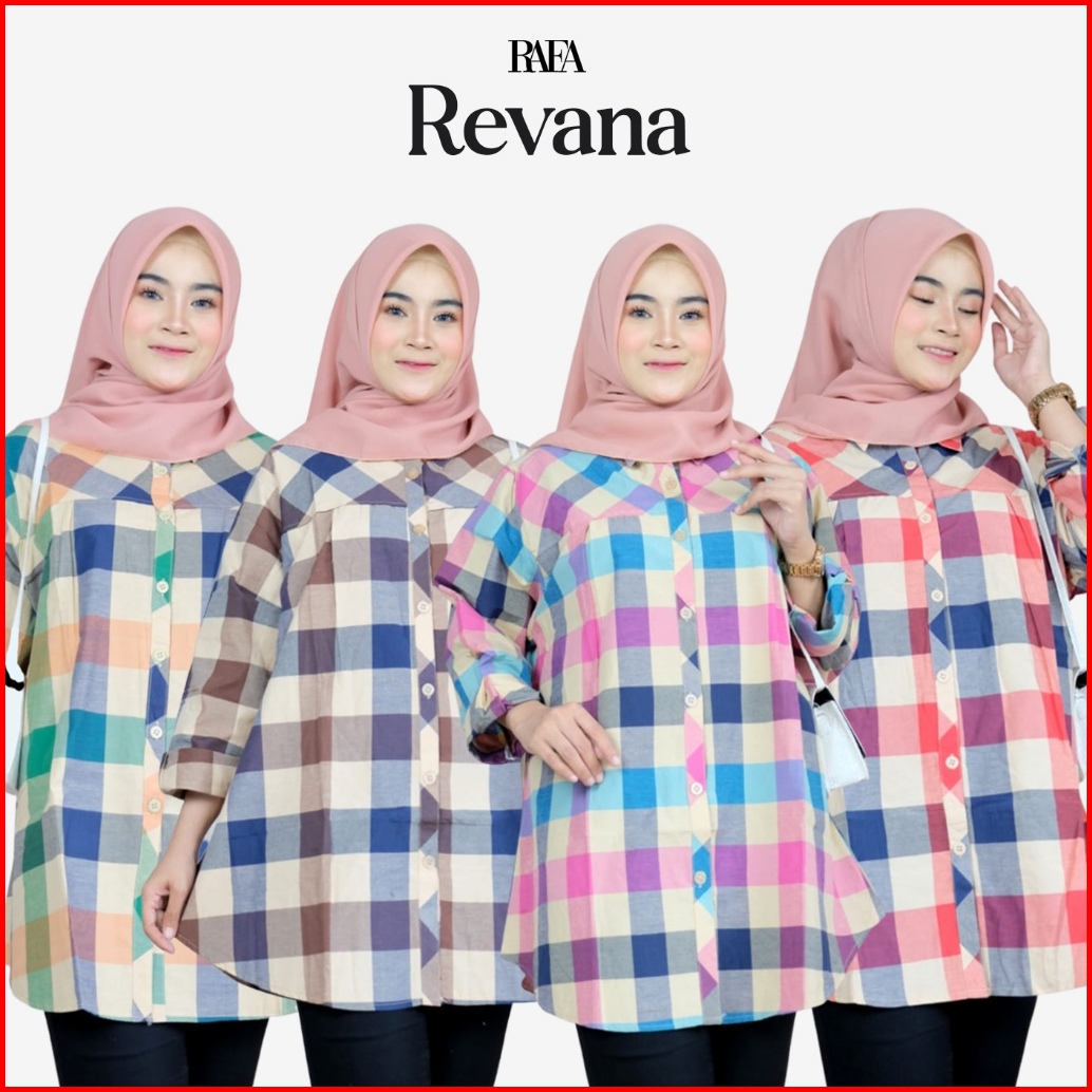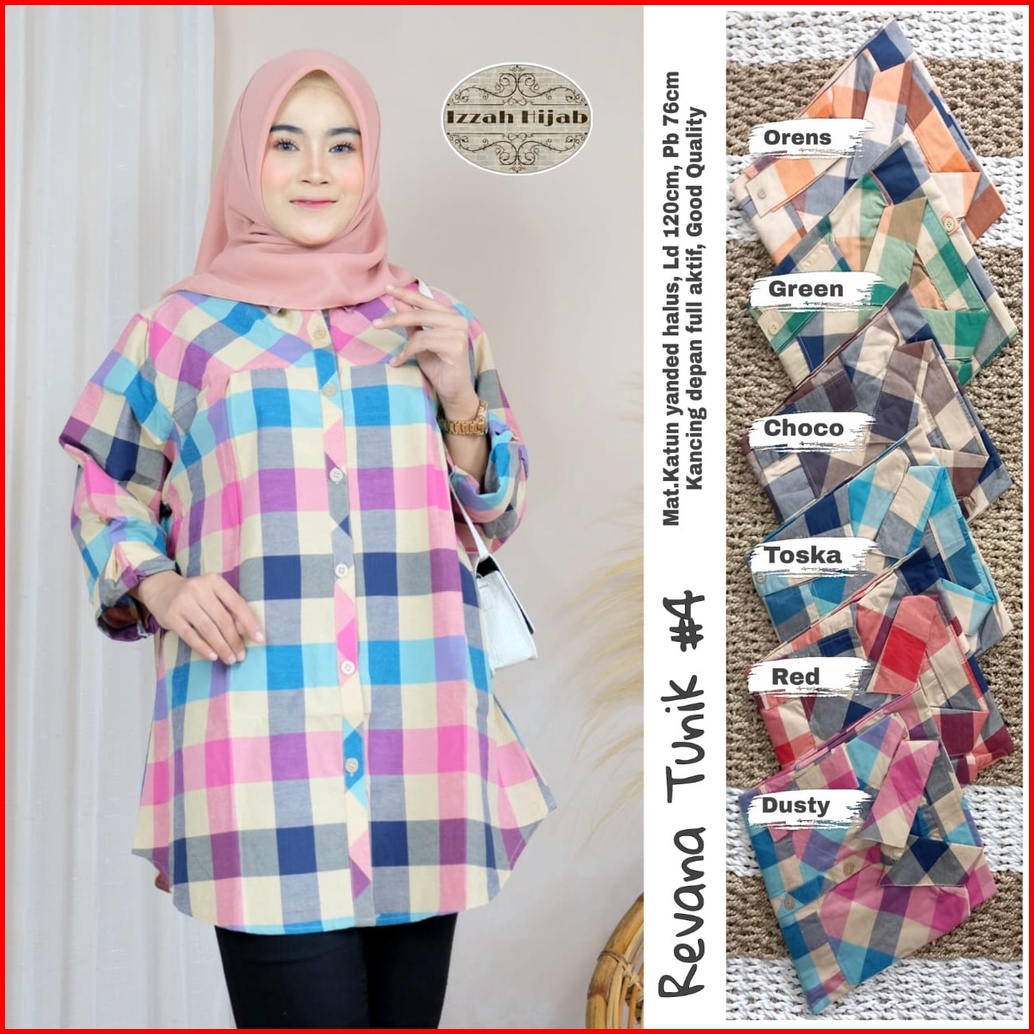 Kemeja Wanita Motif Kotak Revana Tunik Bahan Cotton Hq Ukuran Jumbo Ld 120 Cm By Raffa Hijab