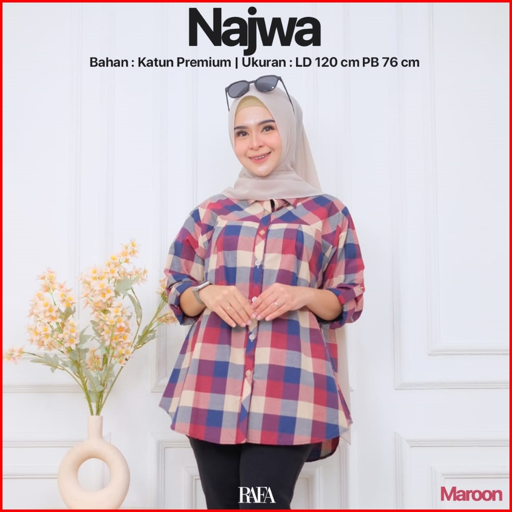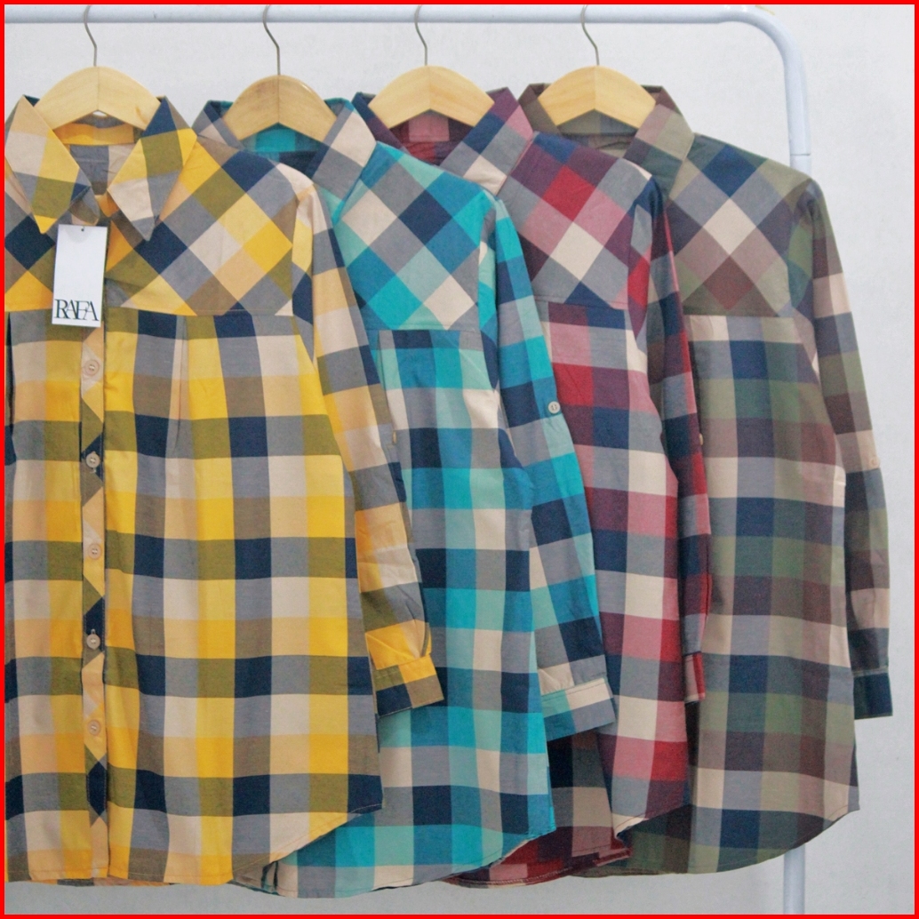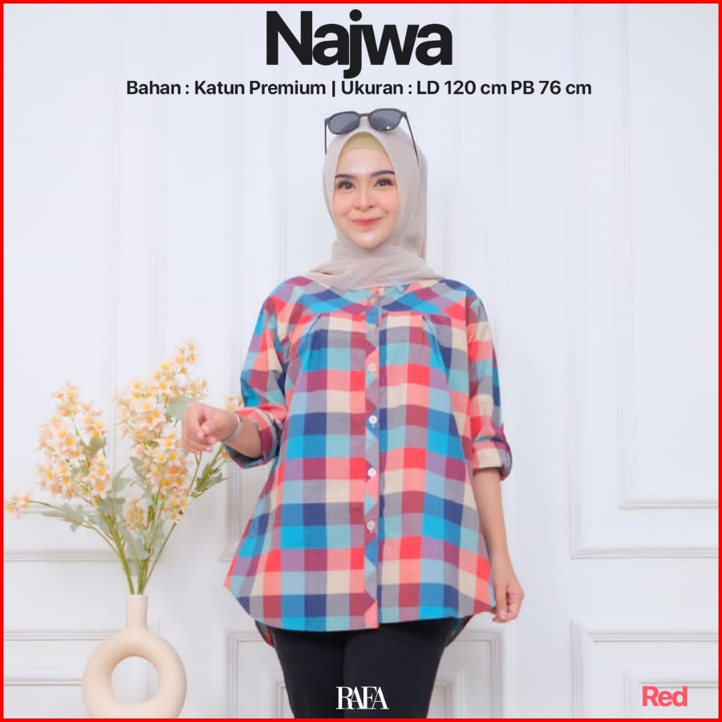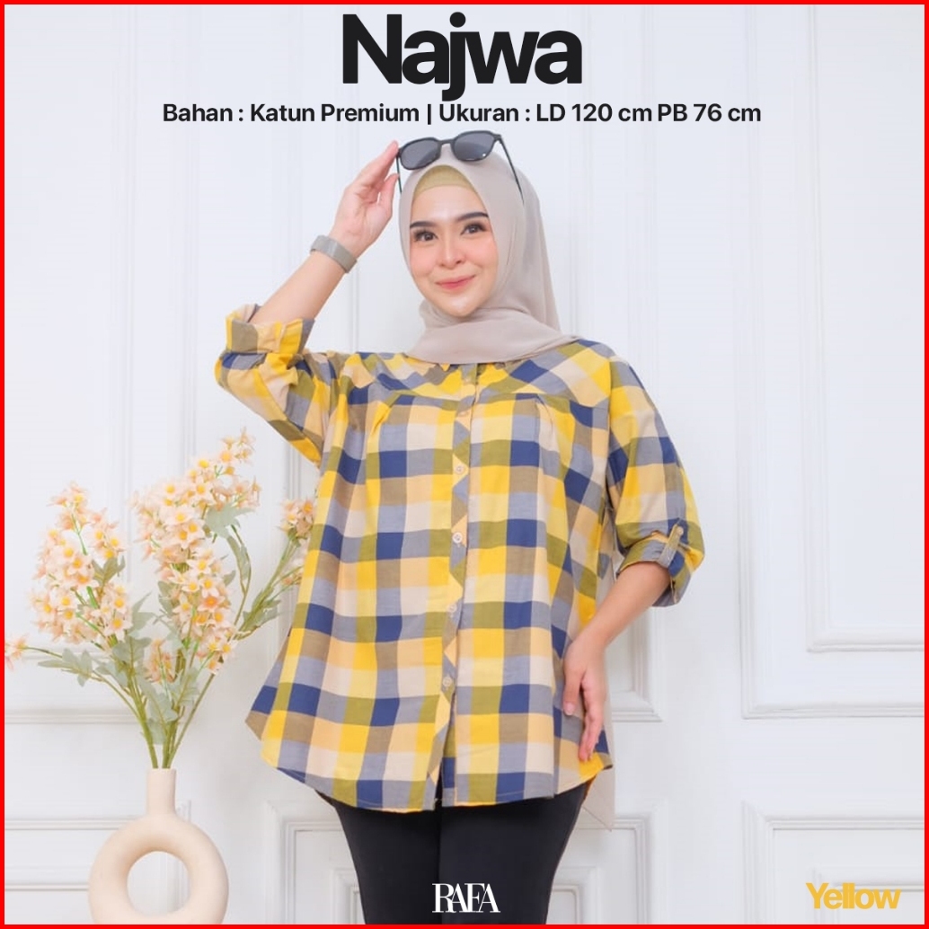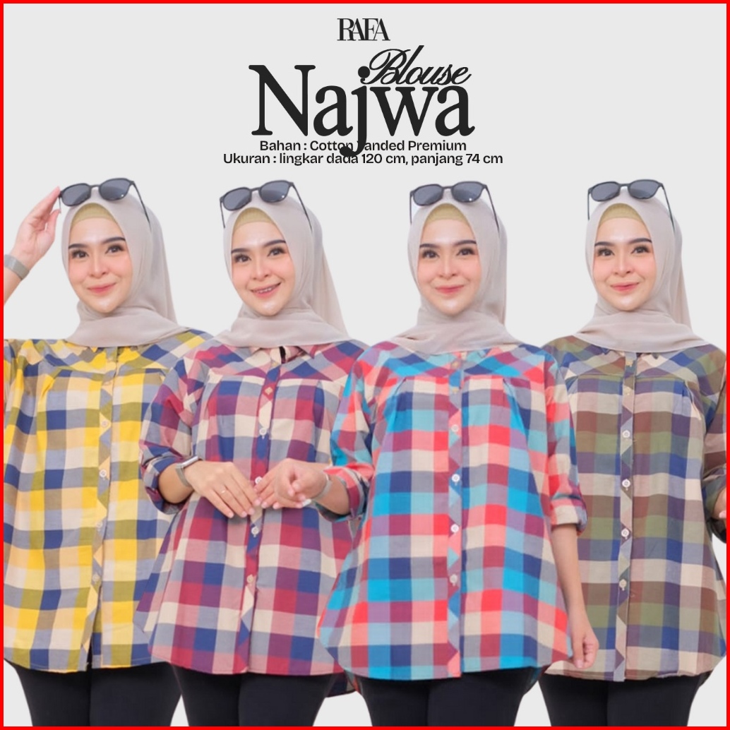 Atasan Blouse Motif Kotak Najwa Blouse Bahan Katun Ukuran Jumbo Ld 120 Cm