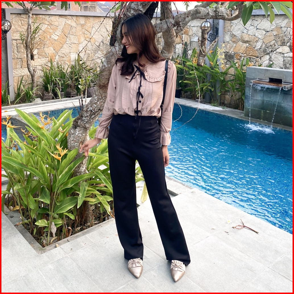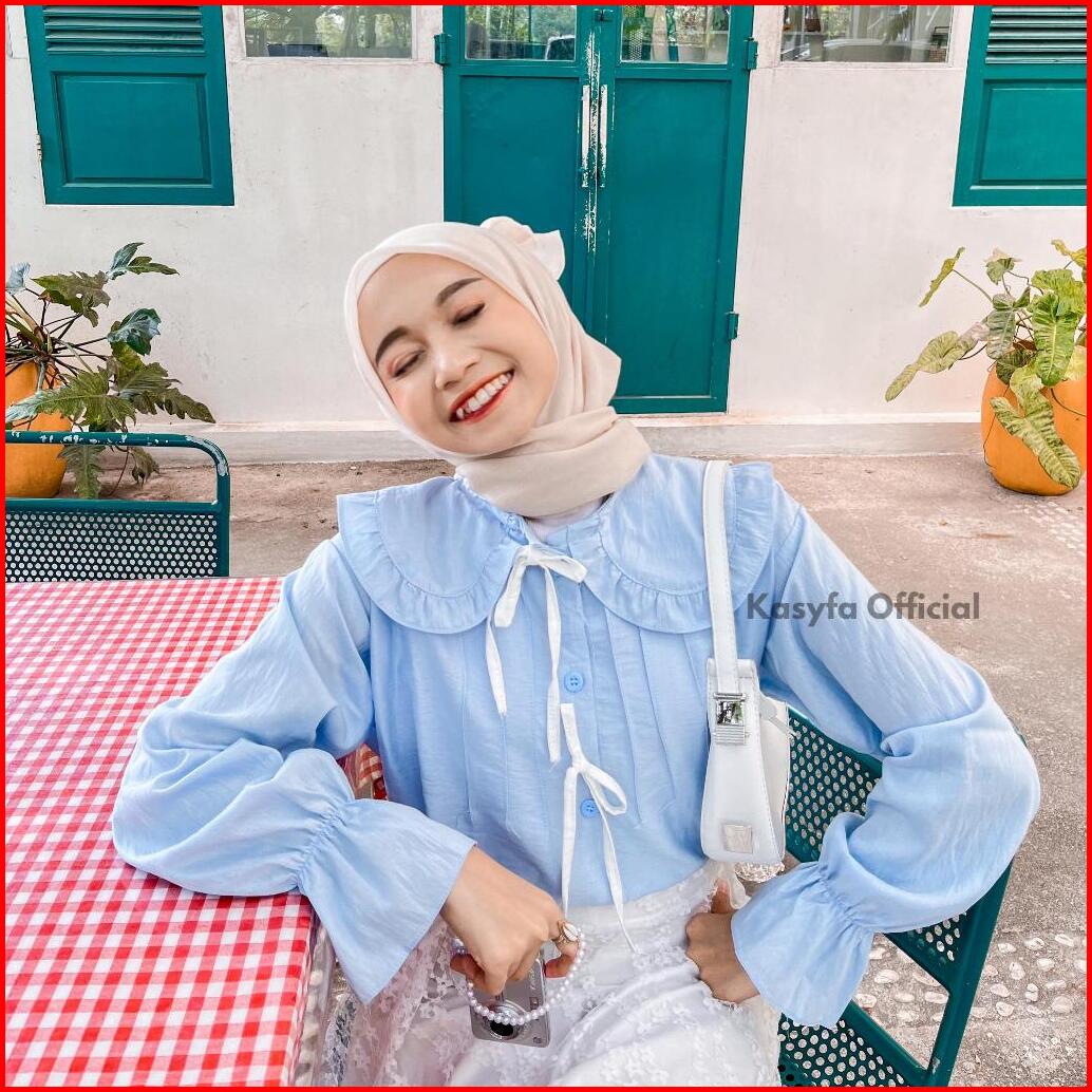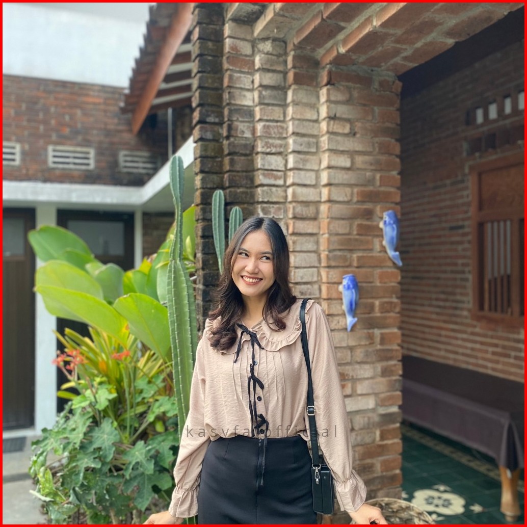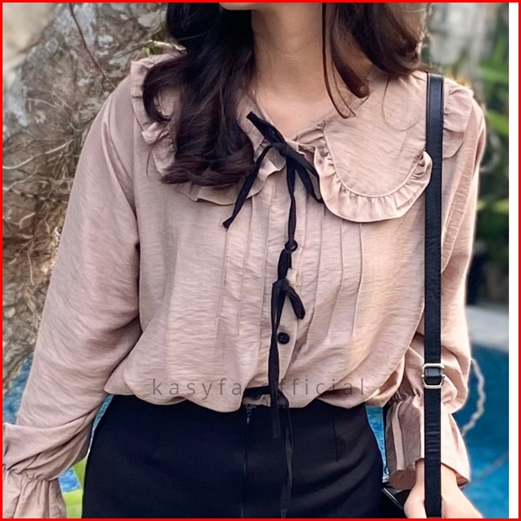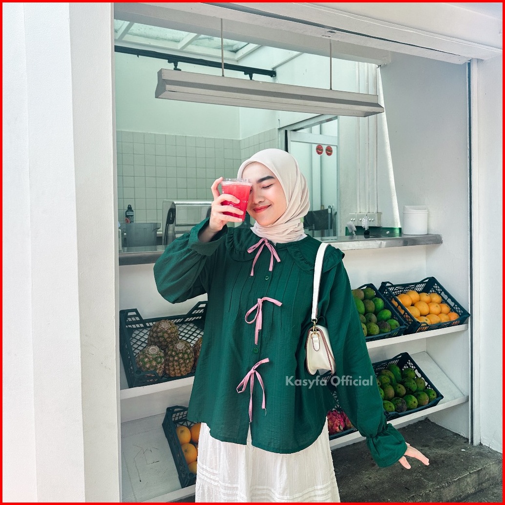 Niscala Ribbon Blouse Polo Linen Warna Beragam