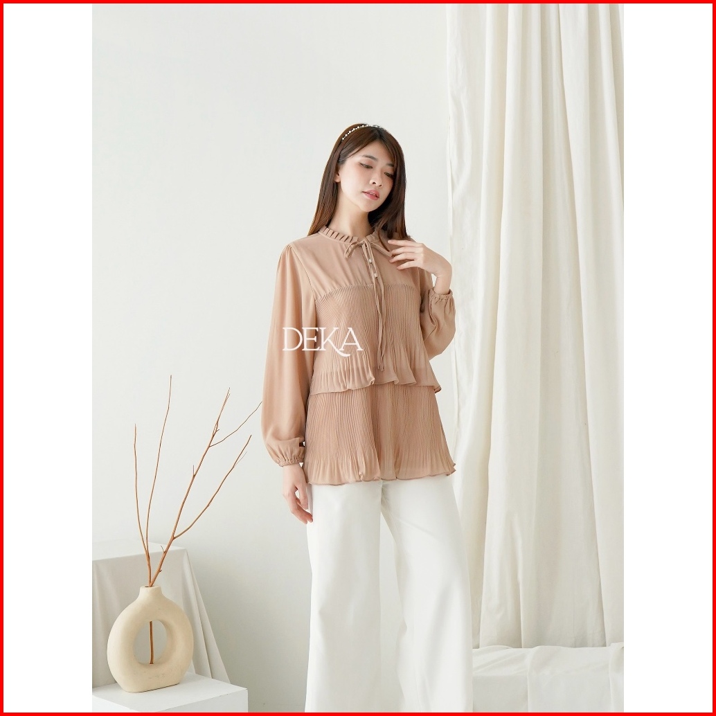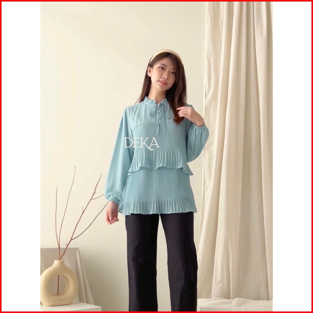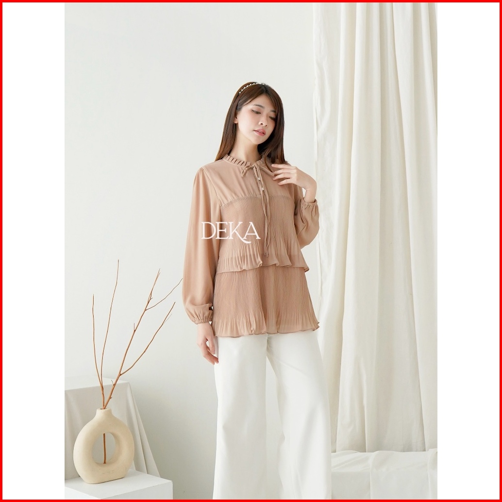 Bikka Aeri Blouse Blouse Wanita Atasan Wanita Longsleeve Blouse Blus Plisket