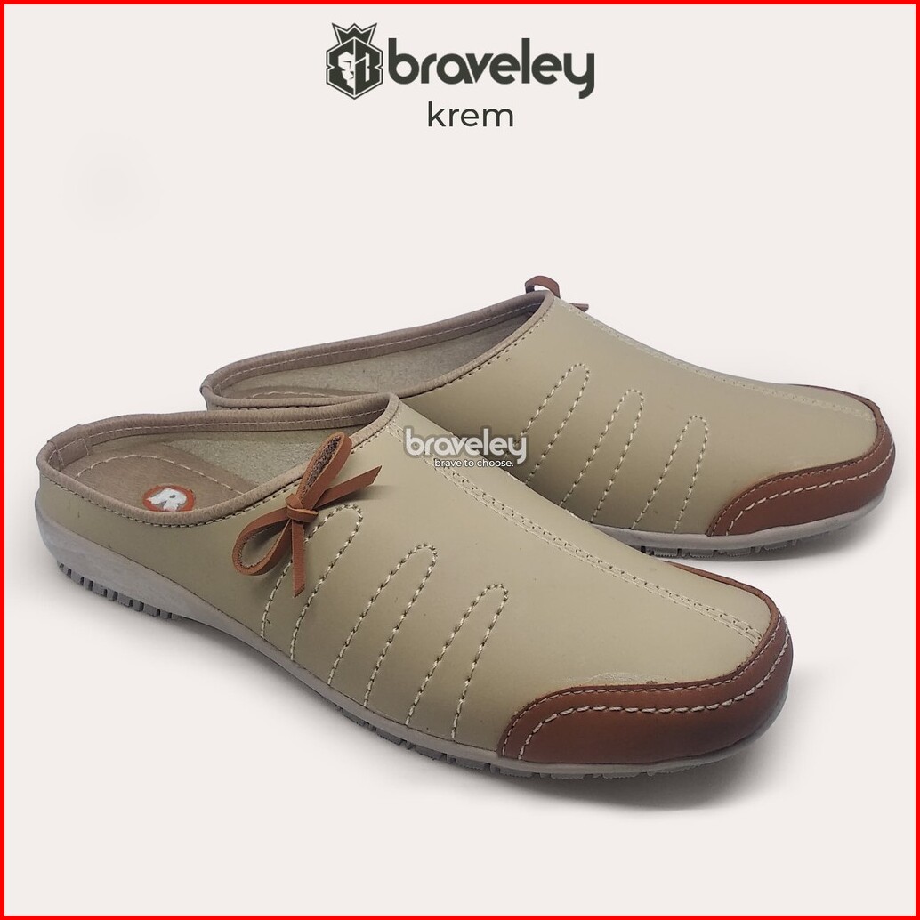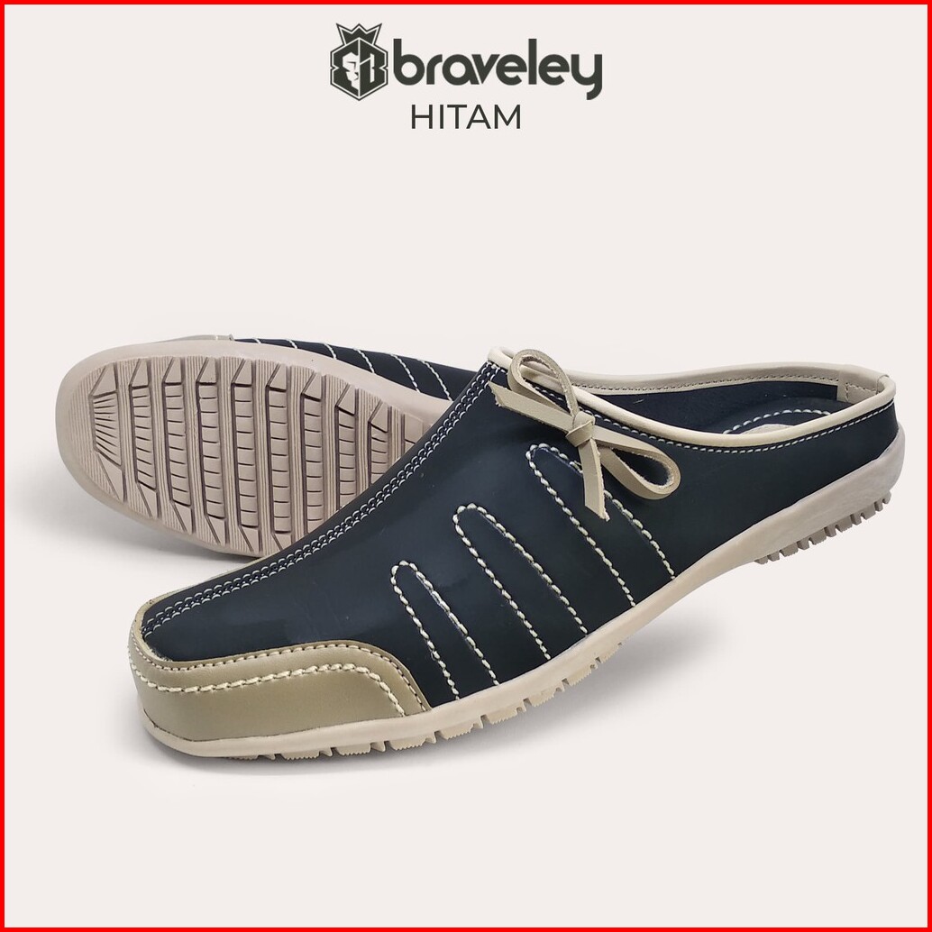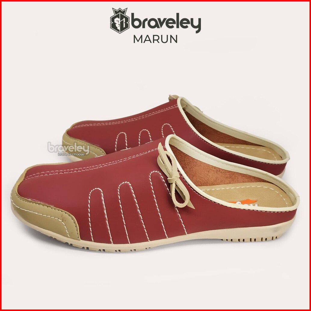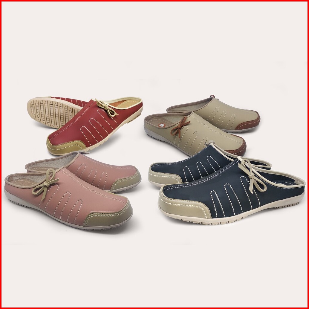 Sandal Sepatu Slip On Wanita Flat Kulit Sintetis