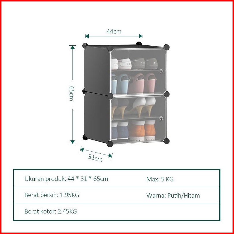 Shenar Rak Sepatu 4 Tingkat Anti Debu Anti Air Rak Lemari Penyimpanan Serbaguna Rak Sepatu 4 Susun 2 Kotak - Rs 4 Tingka