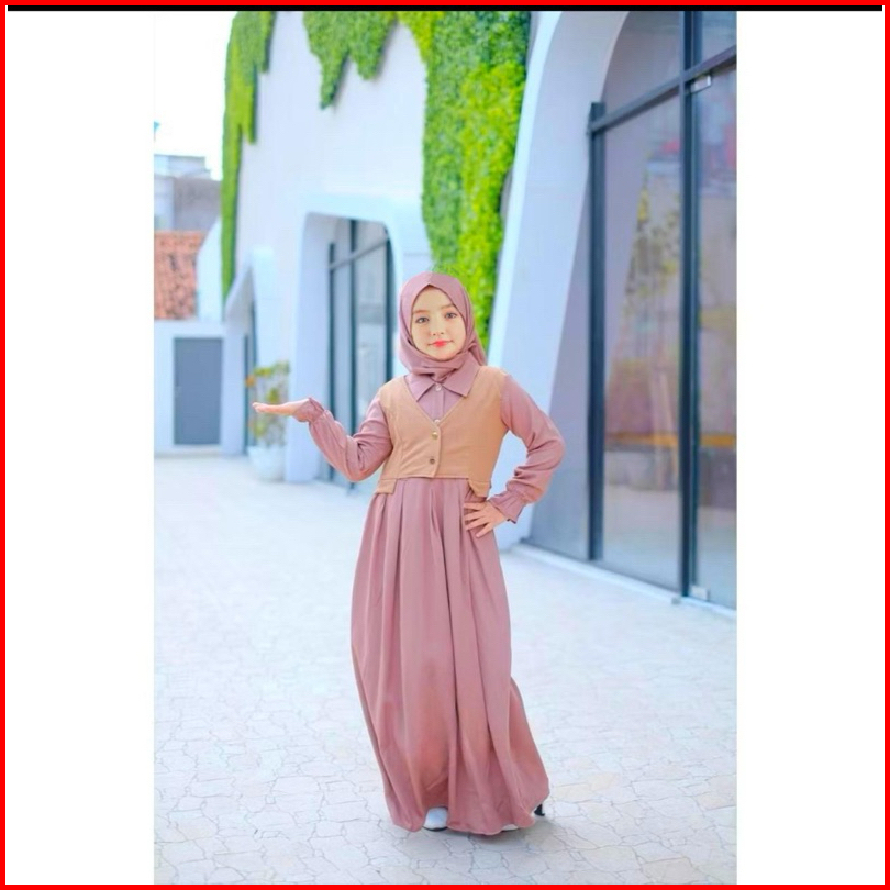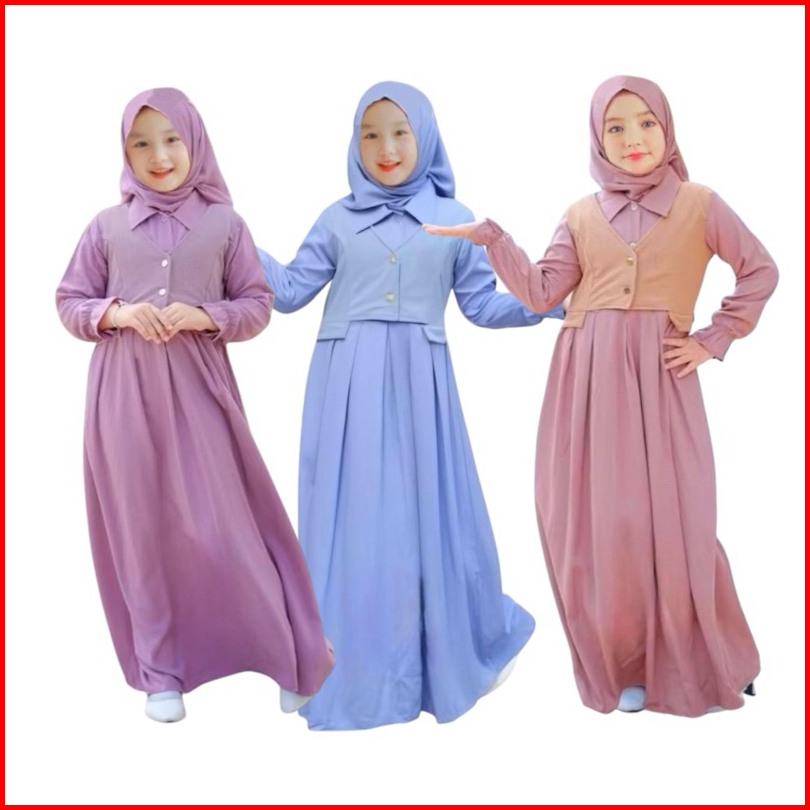 Gamis Anak Perempuan Bahan Rayon Twill Mix Knit Set Gamis Anak Dan Jilbab Terbaru