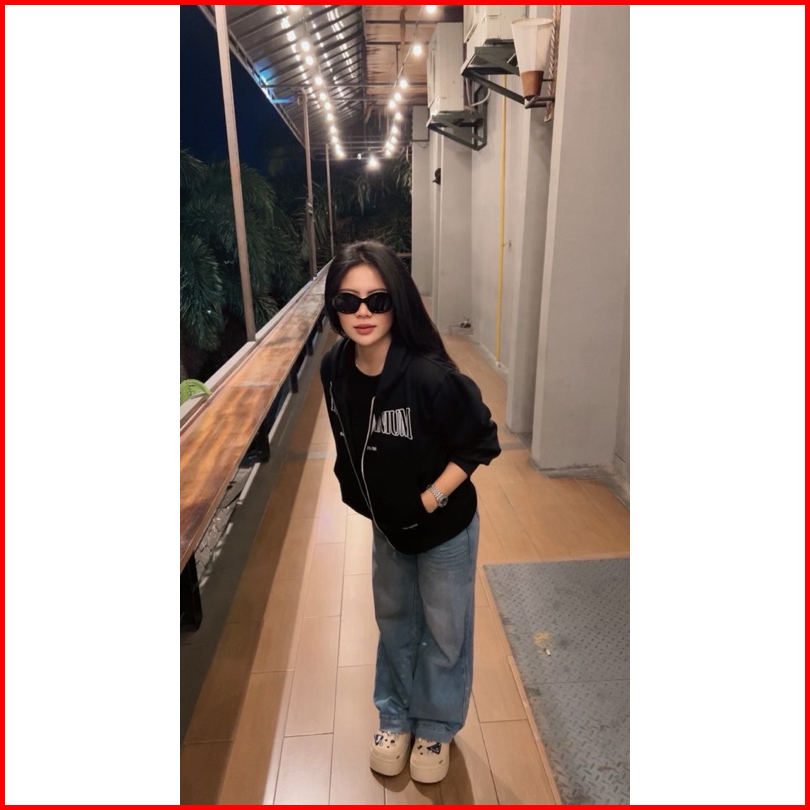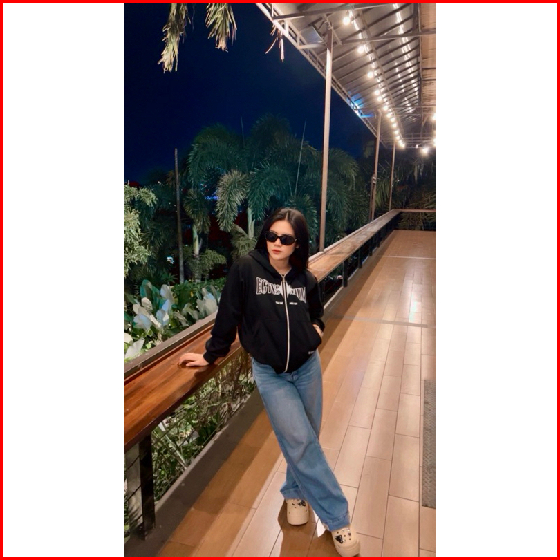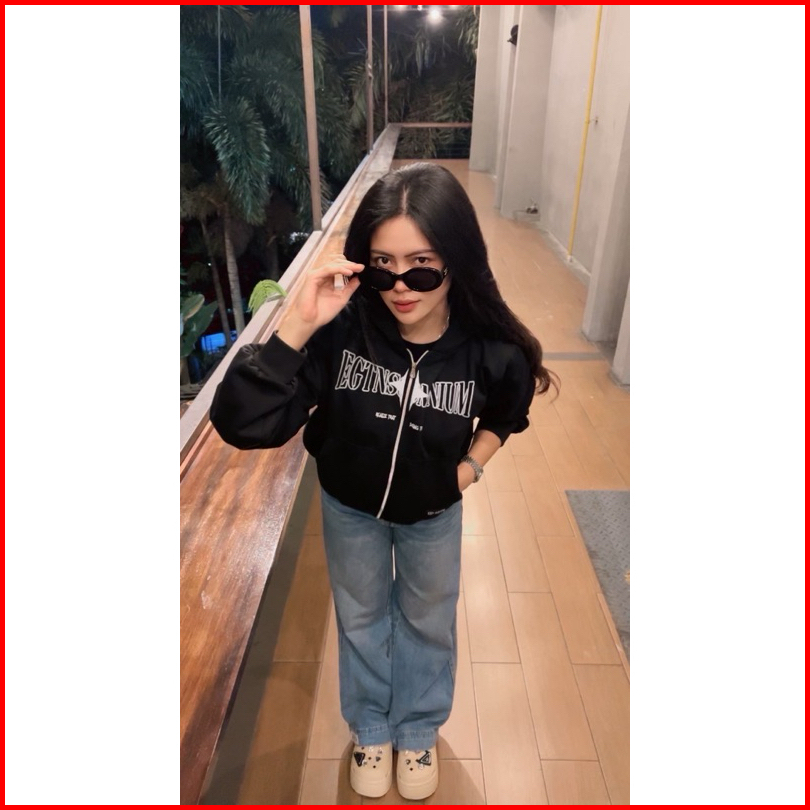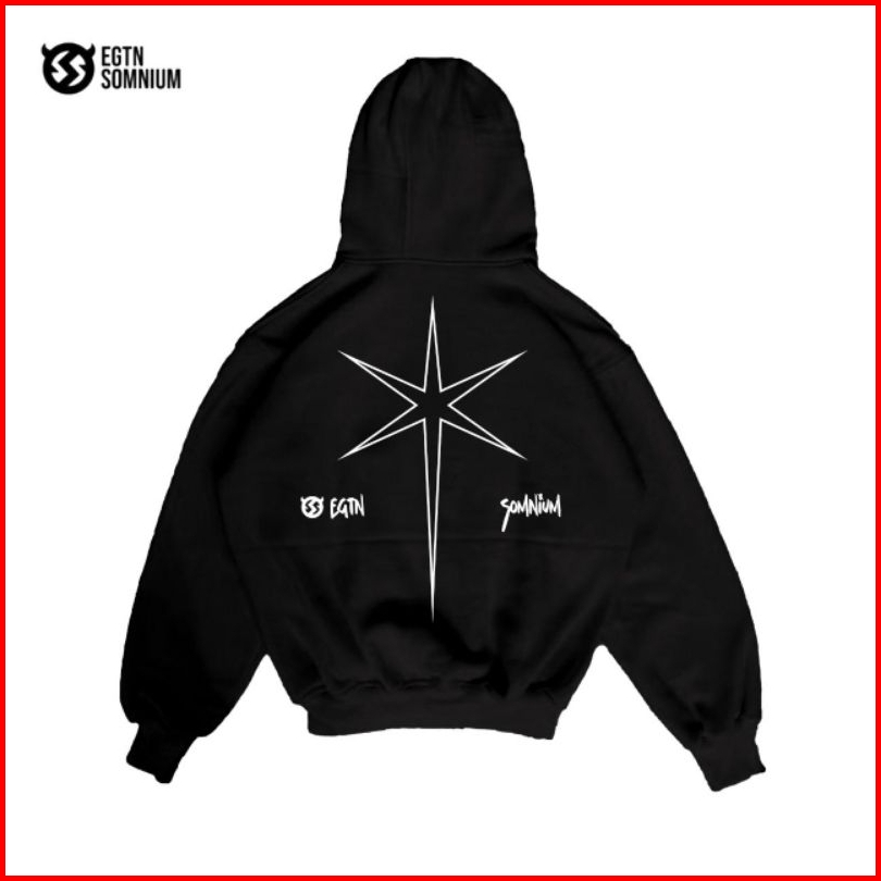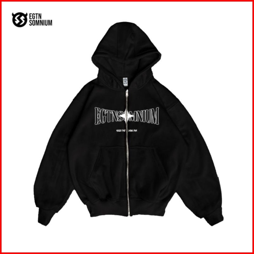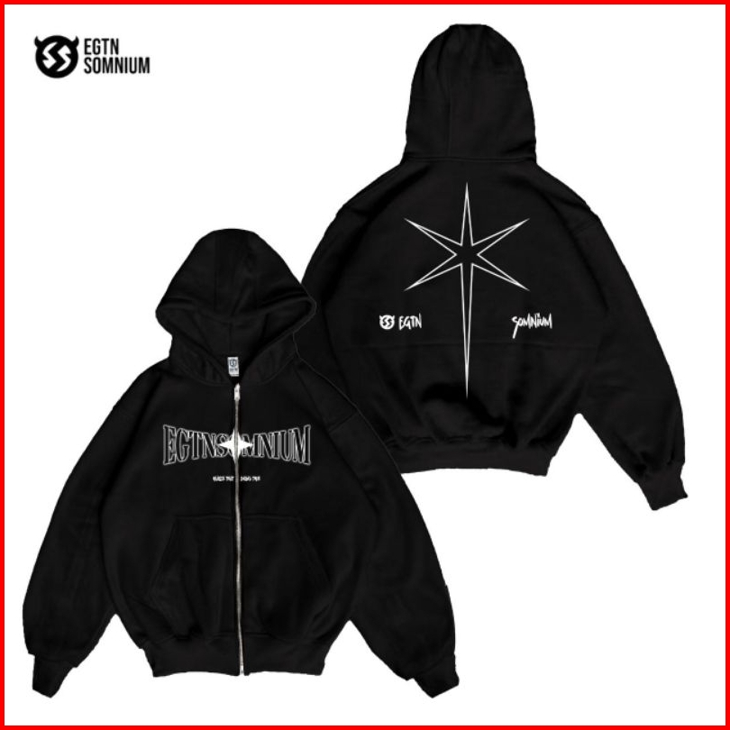 Egtn Somnium Hoodie Boxy Zipper Shuriken Warna Hitam Unisex Pria Wanita