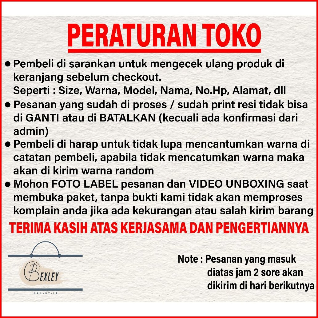 HITAM, PUTIH, NAVY, MAROON, ABU TUA, ABU MUDA, LILAC, LATTE, BEIGE, COKLAT MOCCA, HIJAU ARMY, HIJAU BOTOL, PEACH, SALMON, DUSTY PINK, BABY PINK, STEEL BLUE, OLIVE, MINT, SAGE GREEN, KUNING, ELDERBERRY, BURGUNDY