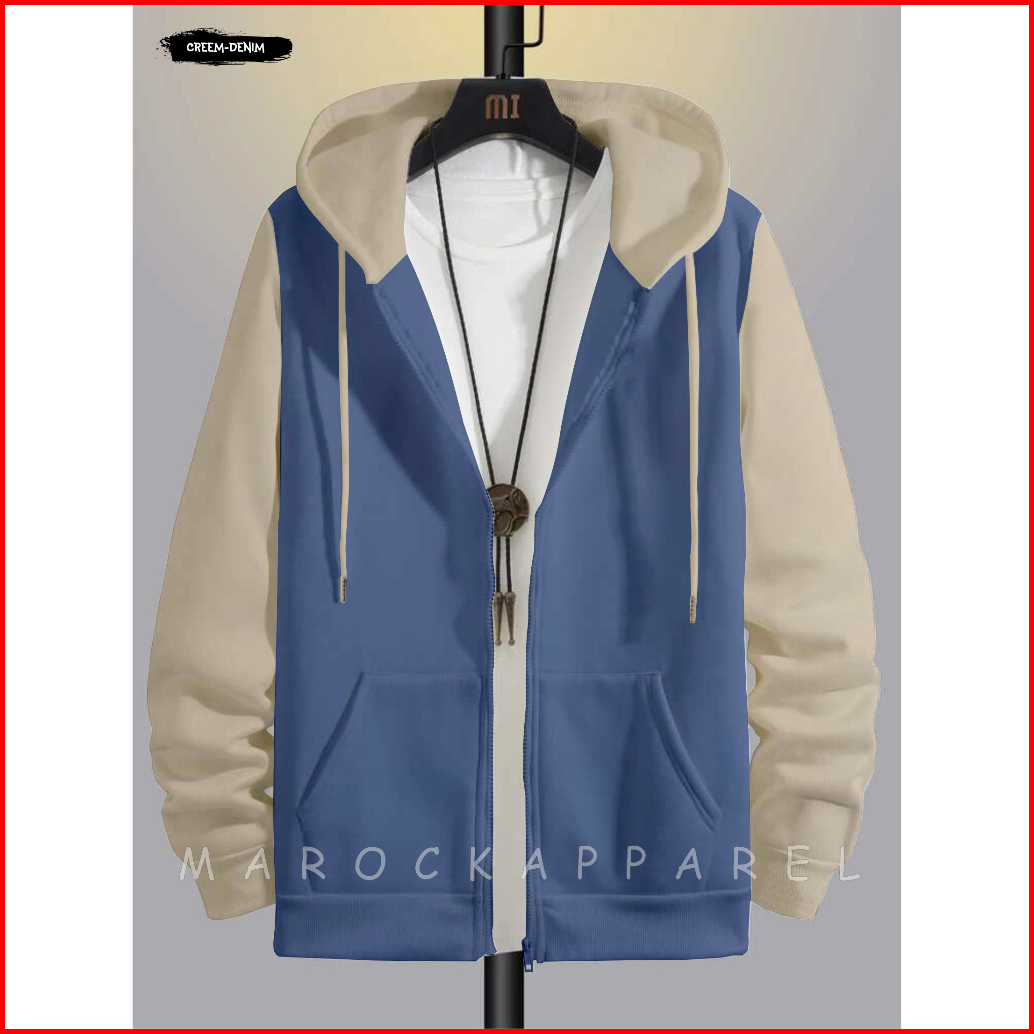 Sweater Hoodie Kombinasi Zipper Pria Wanita Polos - Sweater Zipper Mix Kombi Warna Simple Dan Calm