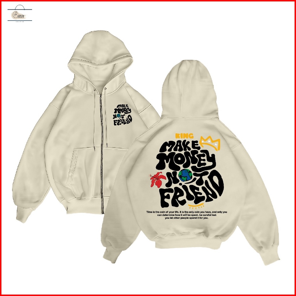 Bexley - Make Money Not Friends Zipper Hoodie Jaket Hoodie Zipper Size M-xxl Unisex Pria Wanita