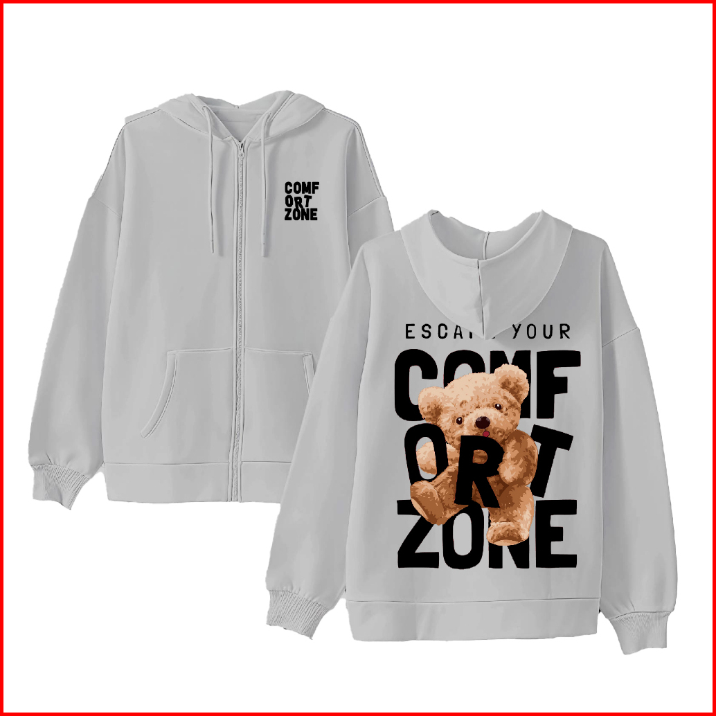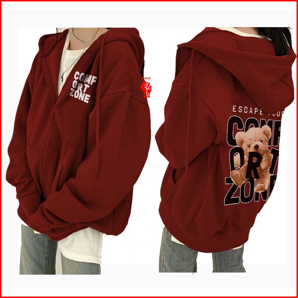 Yudaz Hoodie Zipper Escape Comfort Zone Sablon Depan Belakang Size M-xxl Pria Wanita