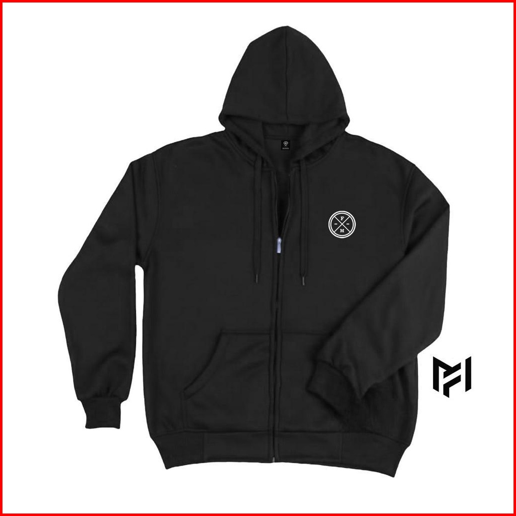 Followme - Hoodie Zipper Fm Round Motif Putih Unisex