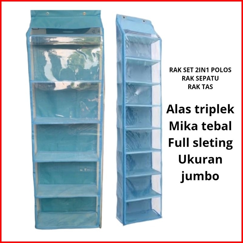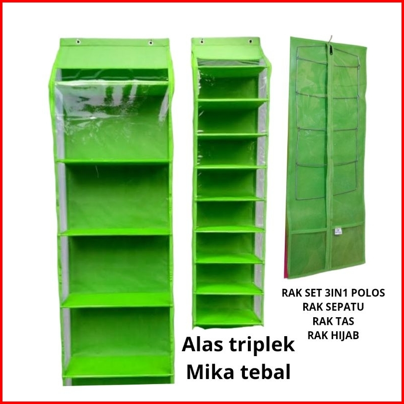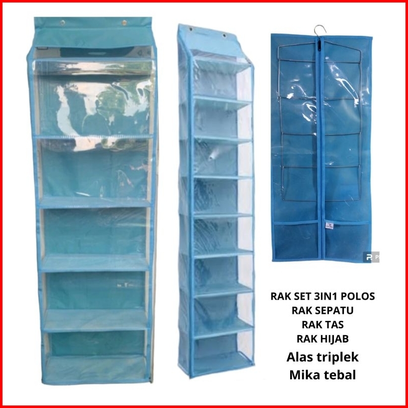Rak Set Gantung 3in1 Polos Rak Sepatu Rak Tas Rak Hijab Mika Tebal Alas Triplek Kualitas Premium