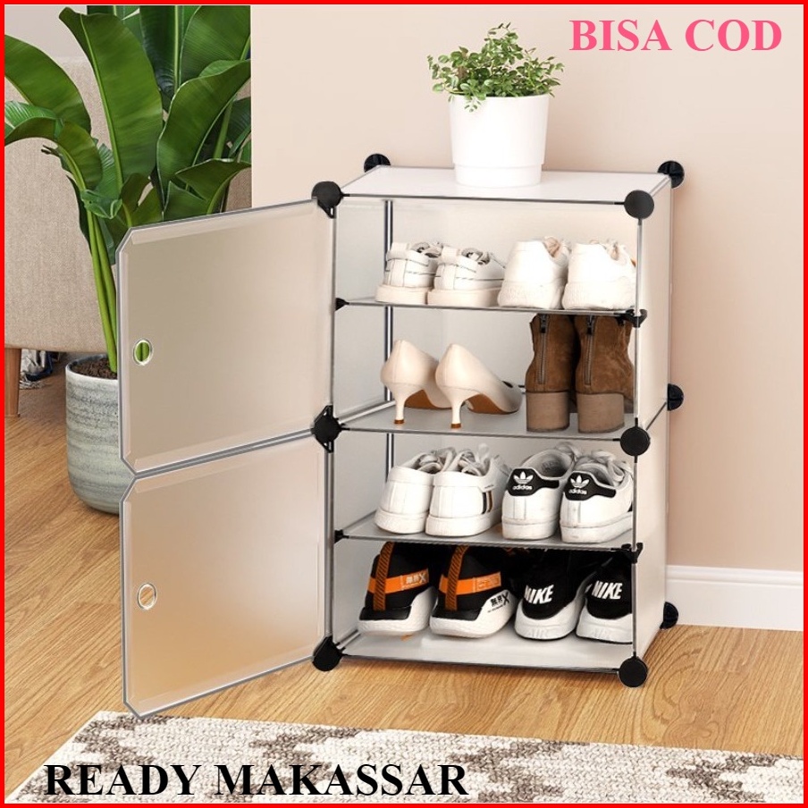Rak Sepatu Anti Debu 4 Layer 4 Susun Tebal 4 Layer Shoe Rack Portable Serbaguna Rak Kotak Sepatu Portable Shenar Makassa