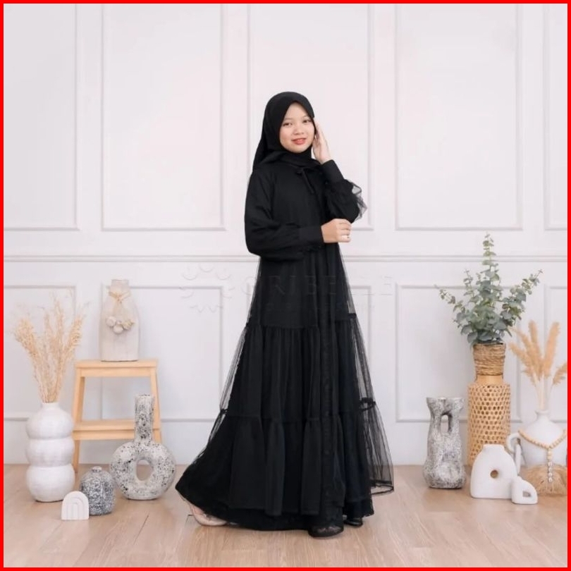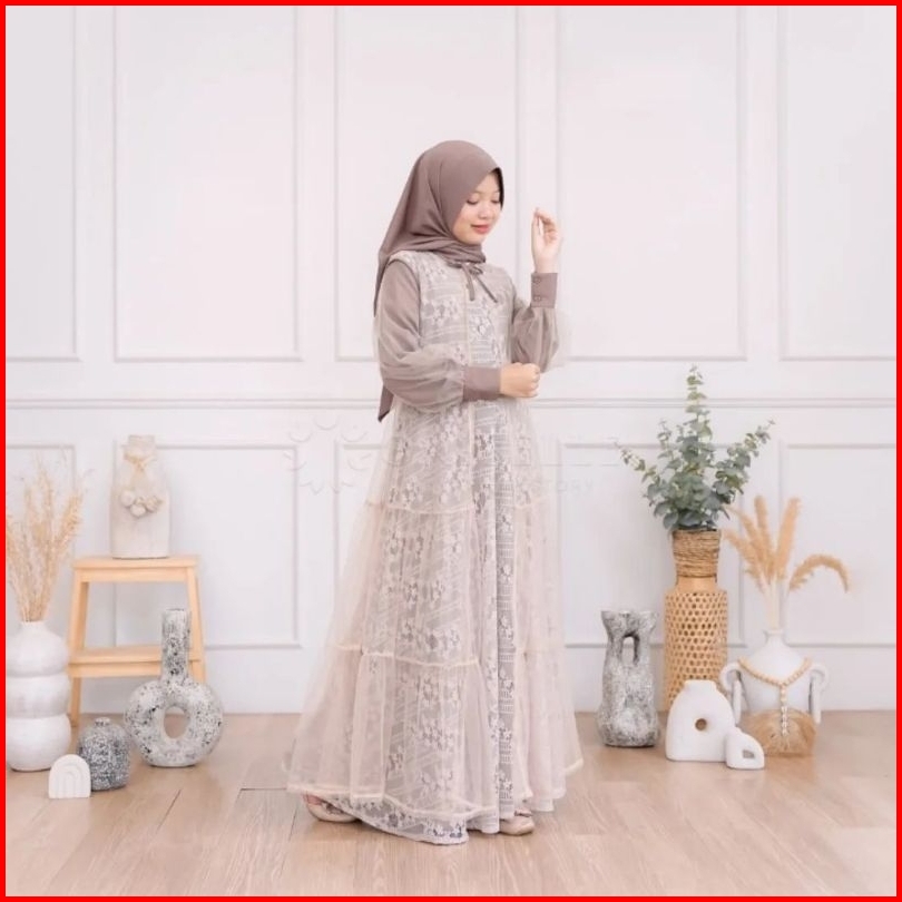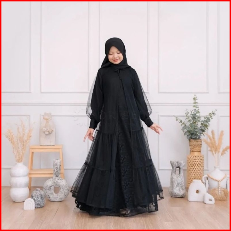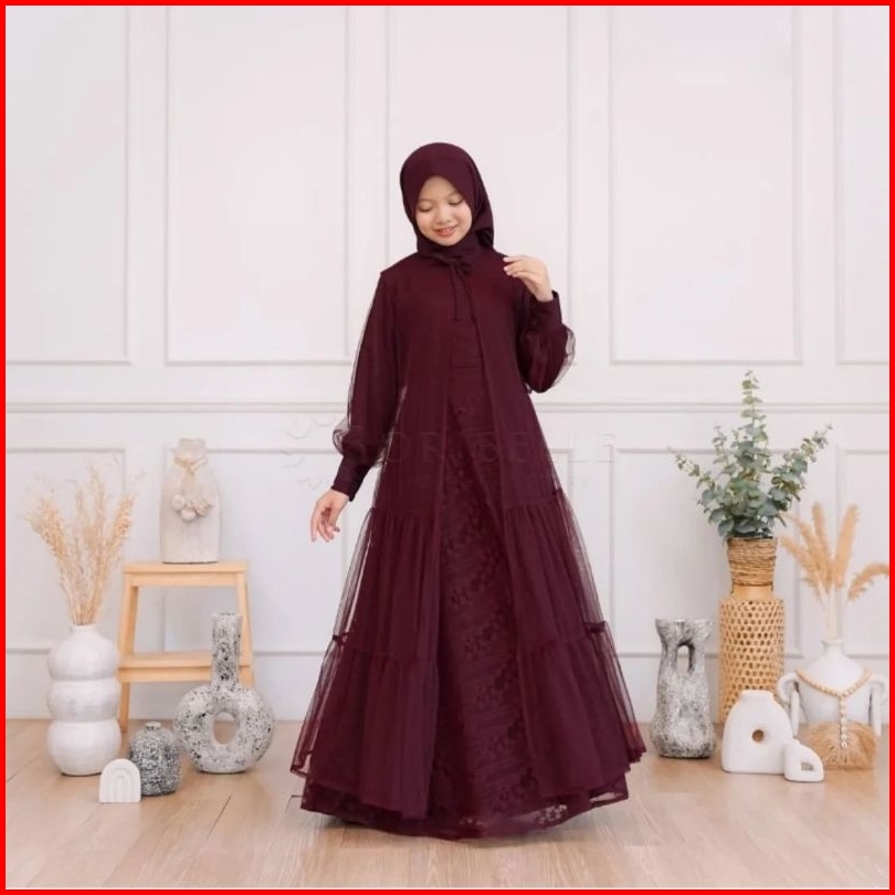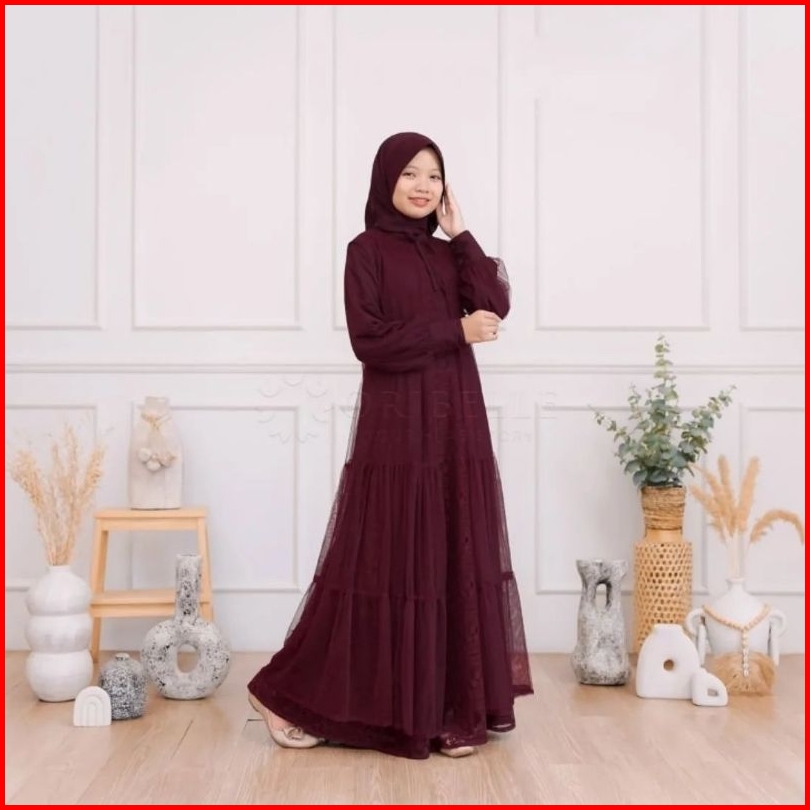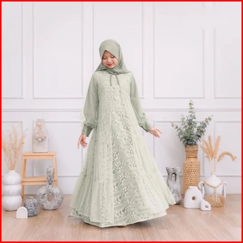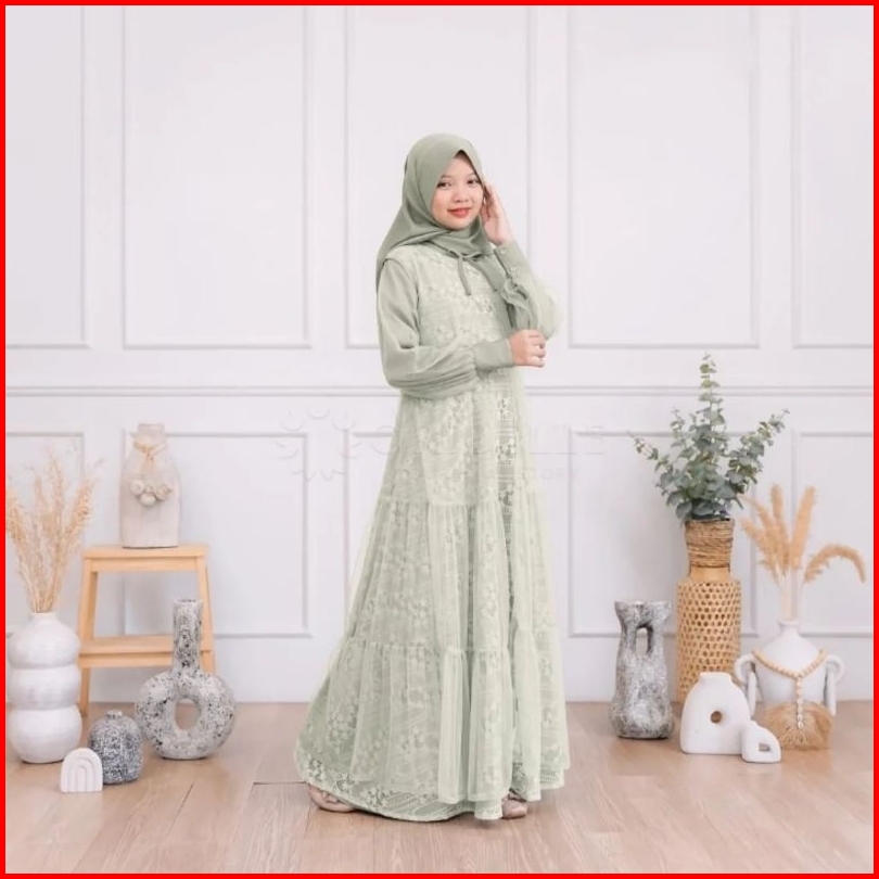 Ellea Dress Kids Gamis Plus Outer Tile Cantik Anak Tanggung Usia 8-13 Tahun Bahan Velvet Mix Brokat Mewah Baju Pesta Leb