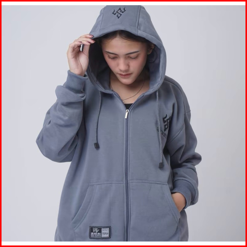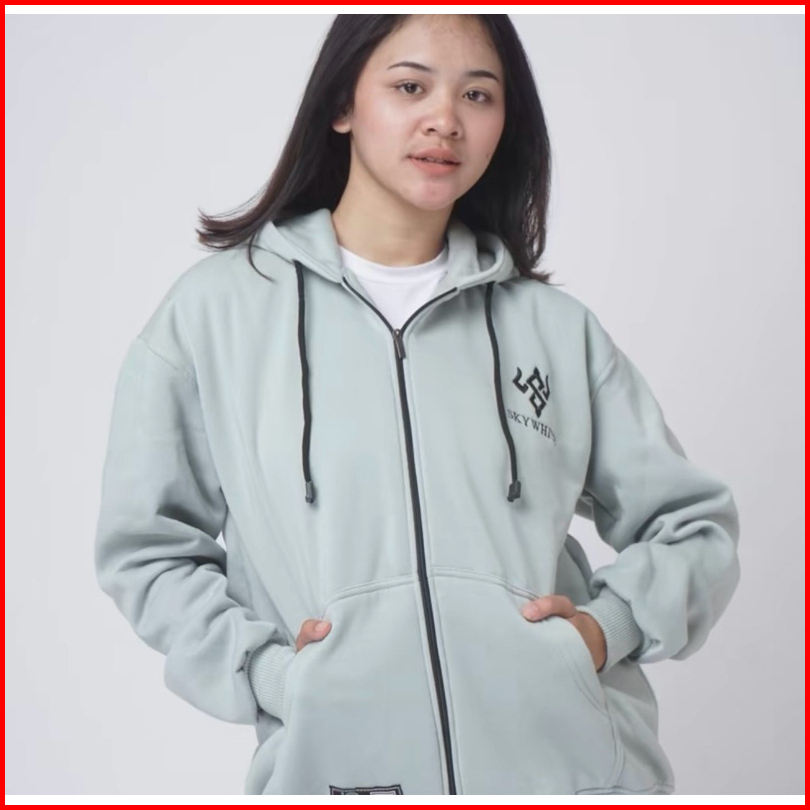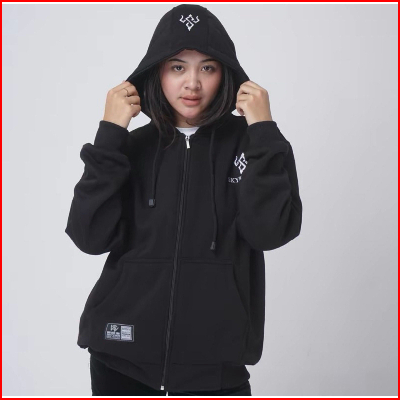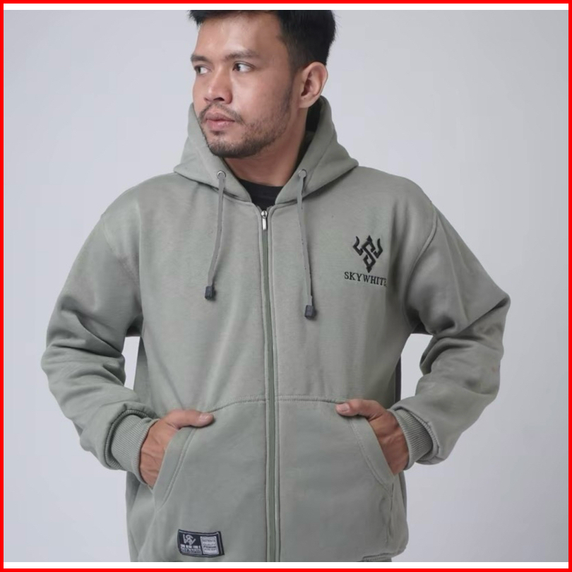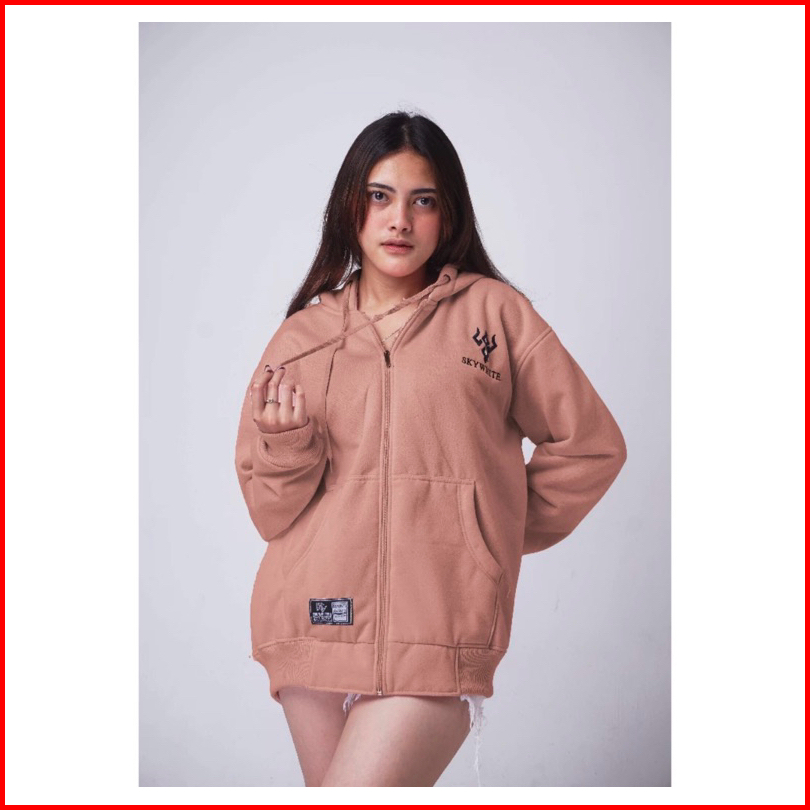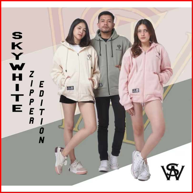 Hoodie Resleting Skywhite Zipper Unisex Simple Motif Bordir Premium Quality Cewek Cowok Tebal Terlaris