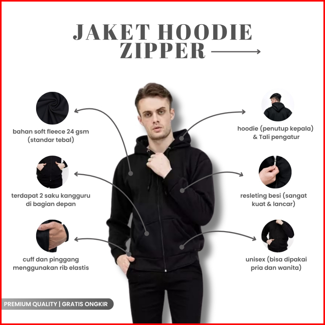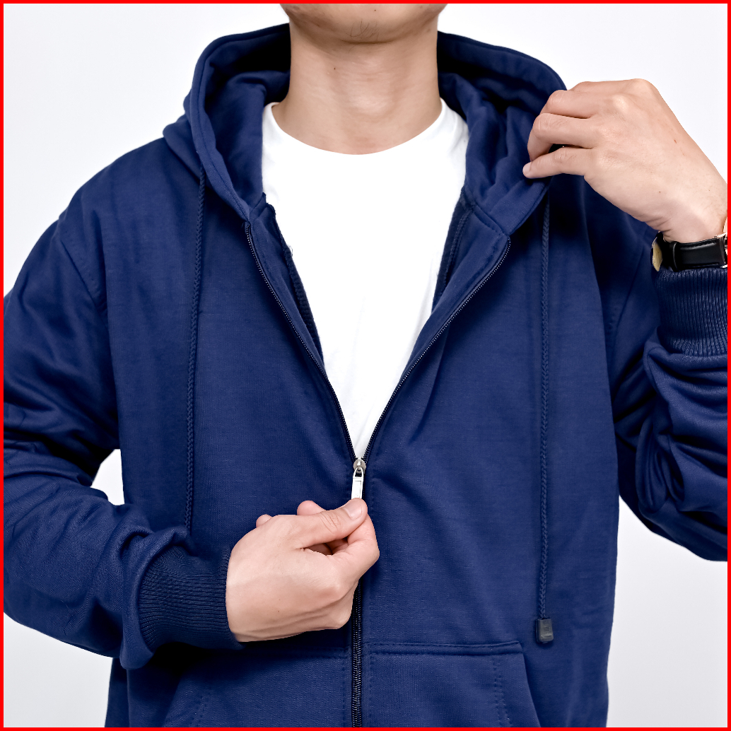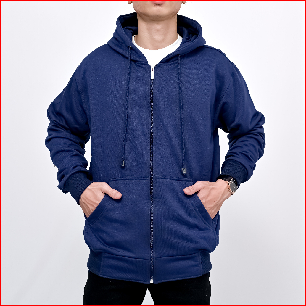 Indo - Jaket Hoodie Zipper Polos Pria Wanita Sweater Hoodie Pullover Premium Distro Navy