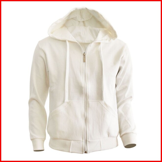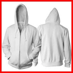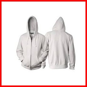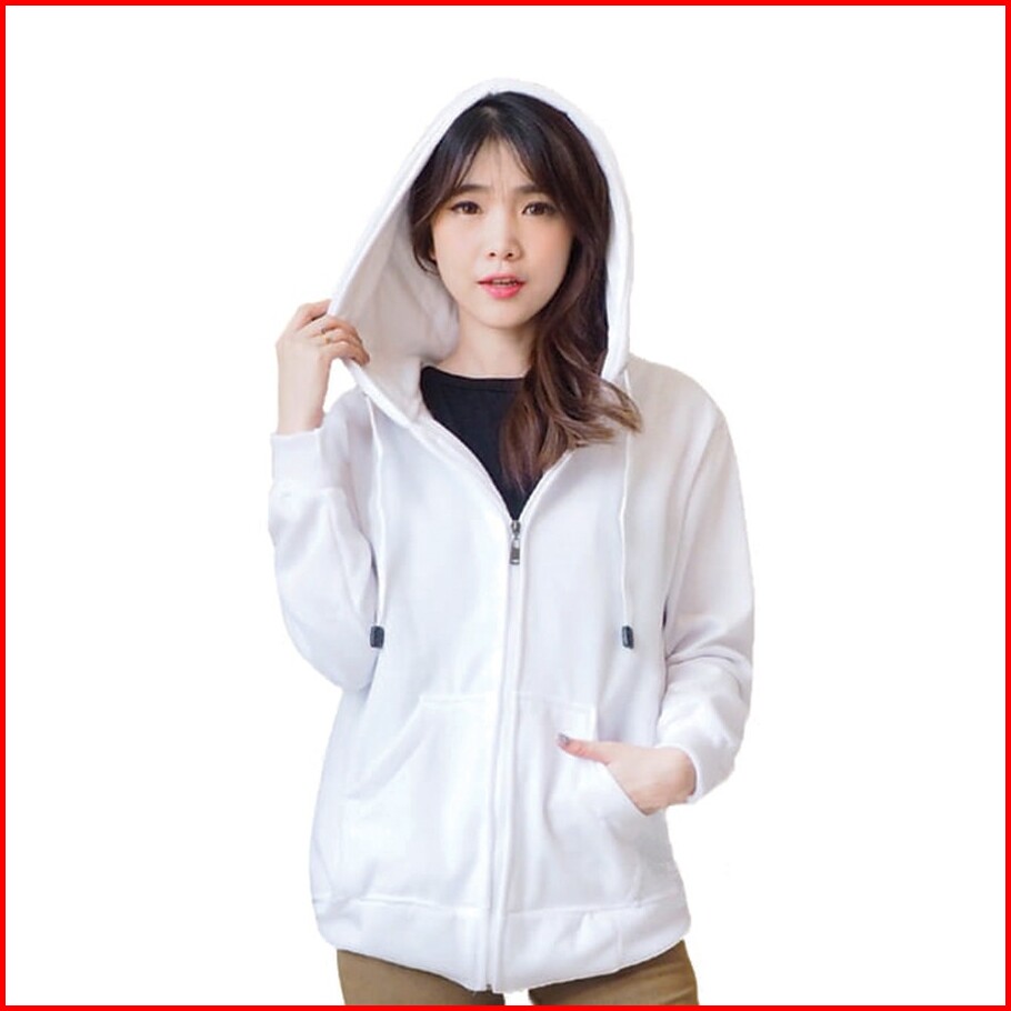 Jaket Hoodie Zipper Putih Unisex Cotton Fleece