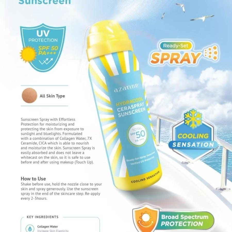 Azarine Hydracool Ceraspray Sunscreen SPF50 PA+++ 50ml BPOM
