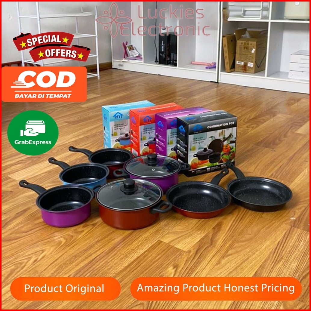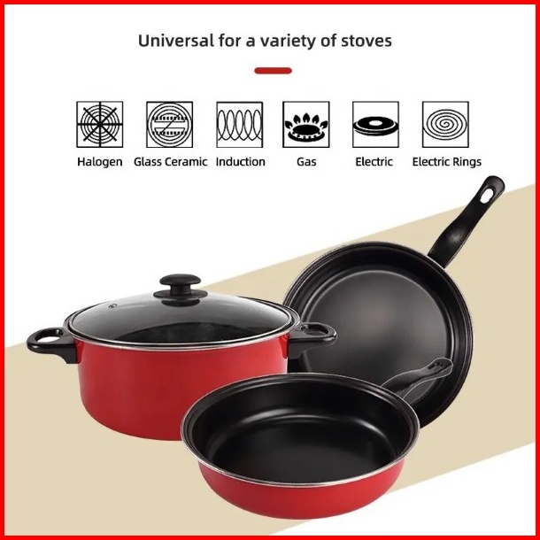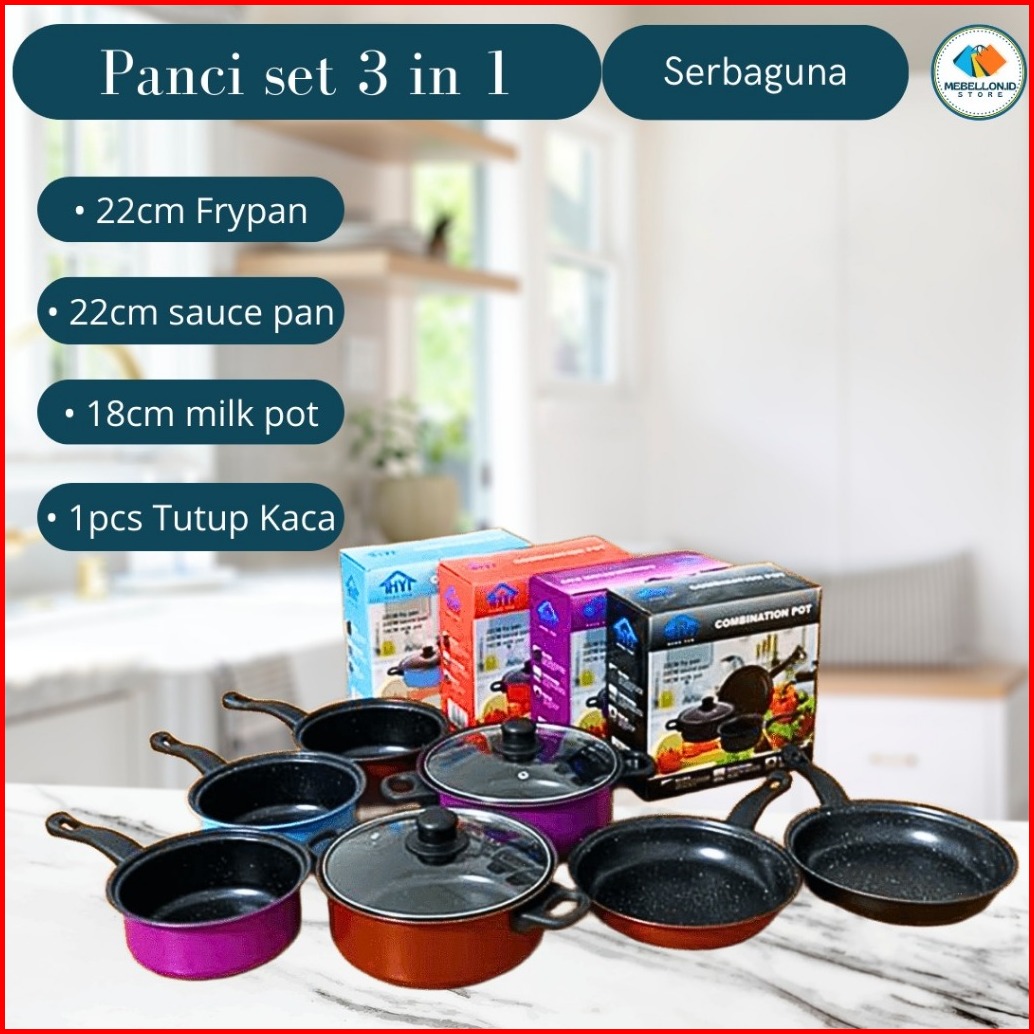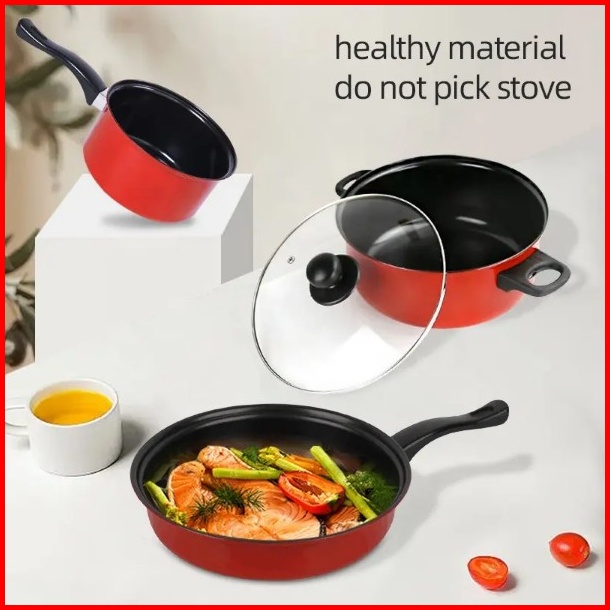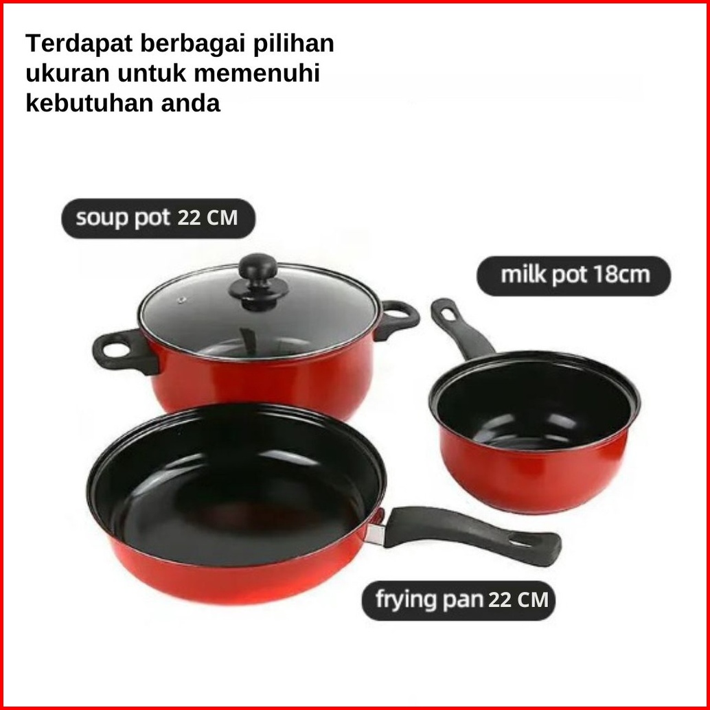 Panci Set Wajan Teflon 3 In 1 Cookware Set Stainless Steel Free Tutup Kaca Panci Kukus Fry Pan