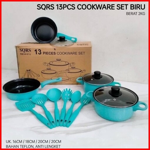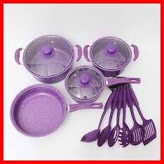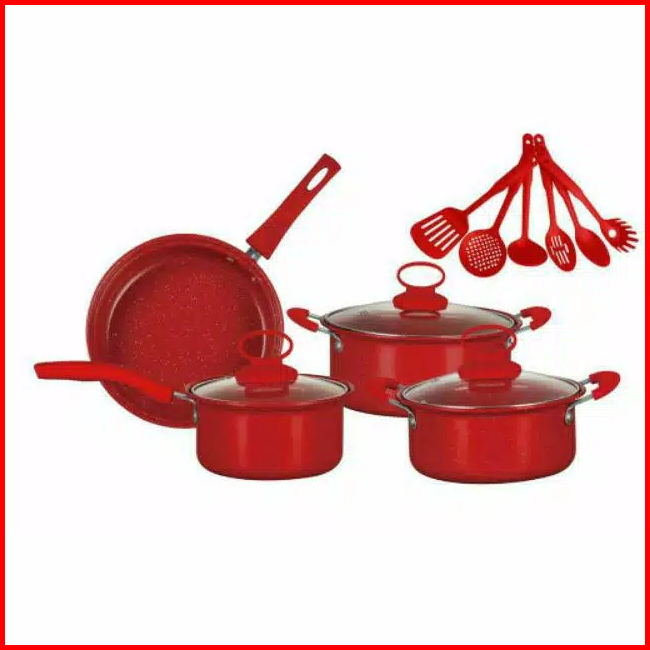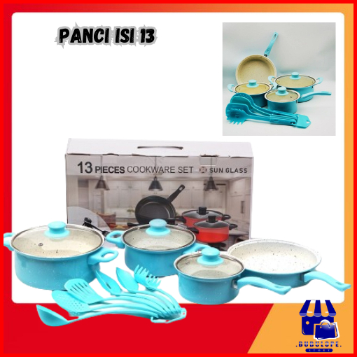 Panci Set Serbaguna Teflon Marble 13 Pcs Cookware Set Tutup Kaca Stainless Steel