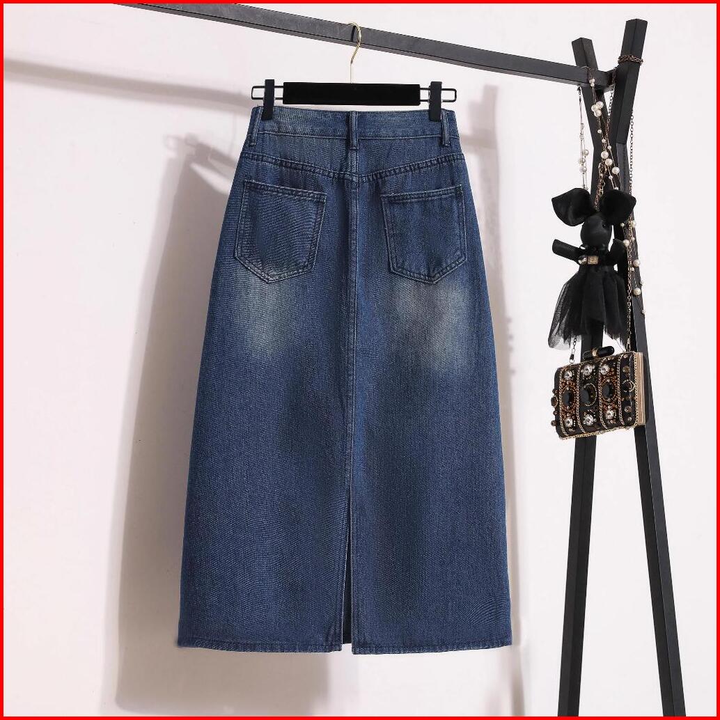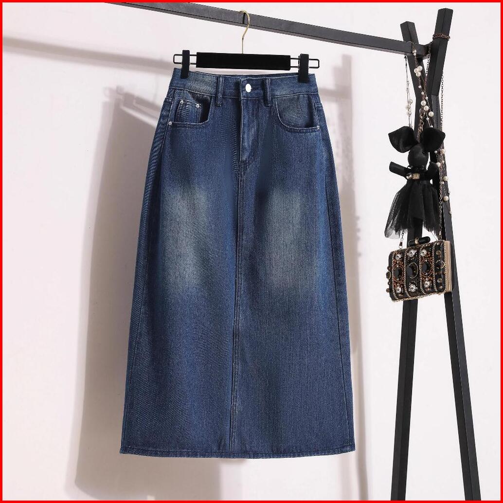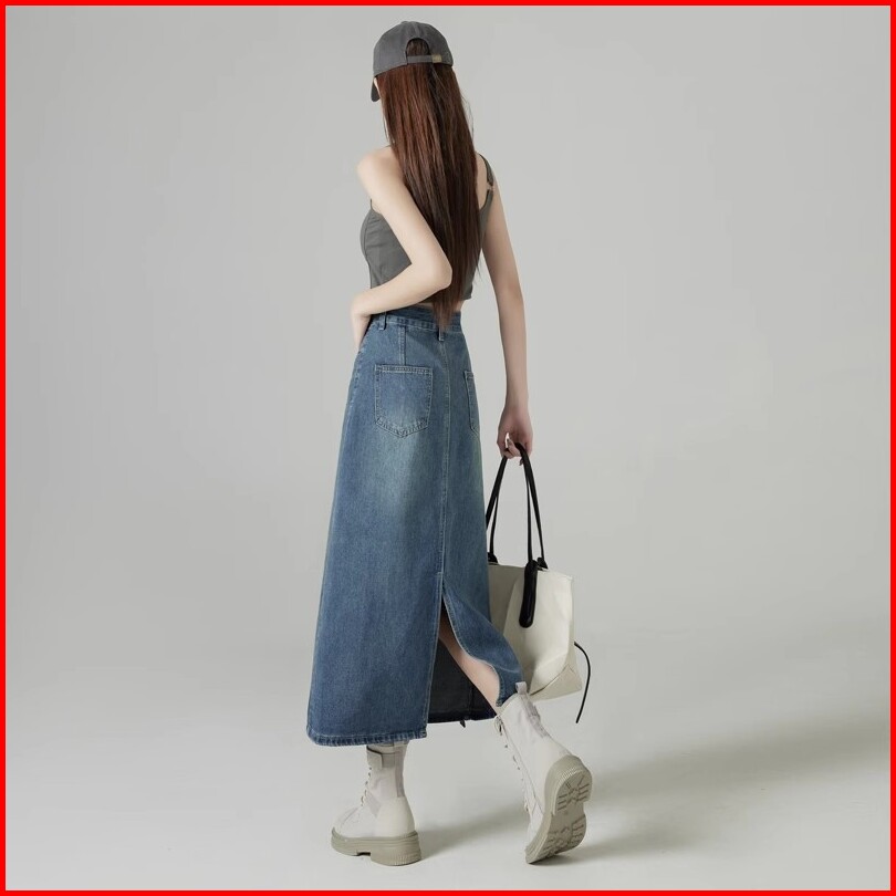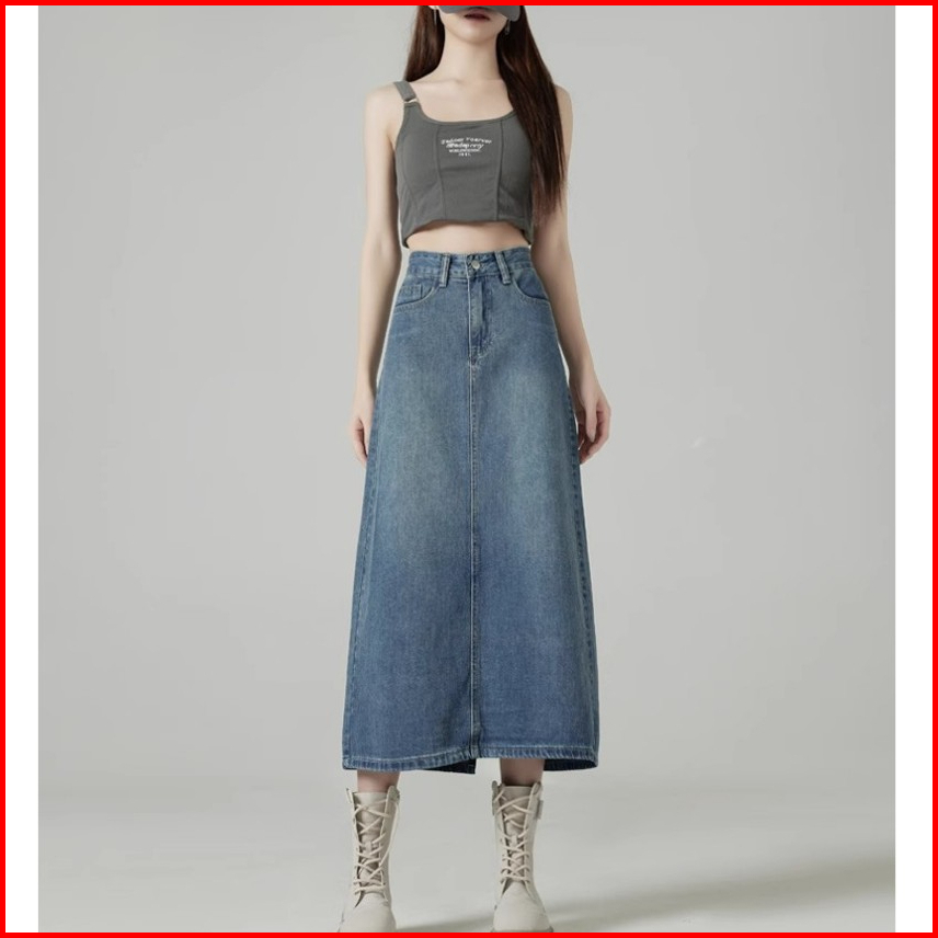 Keygirl Rok Jeans Belah Premium Wanita Midi Skirt A Line 7 8 Korea Rok Jeans Span Panjang Kekinian