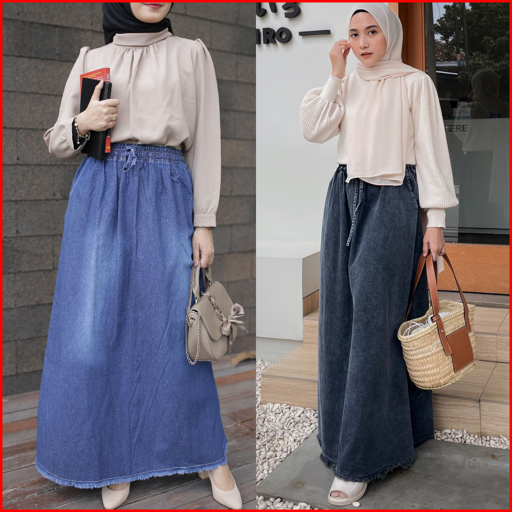Frill Denim Skirt Rok Jeans By Sassaskirt Rok Rawis Rok Jeans Rok Panjang Rok Basic