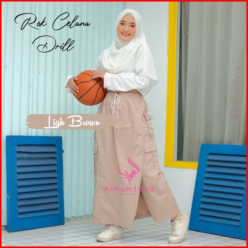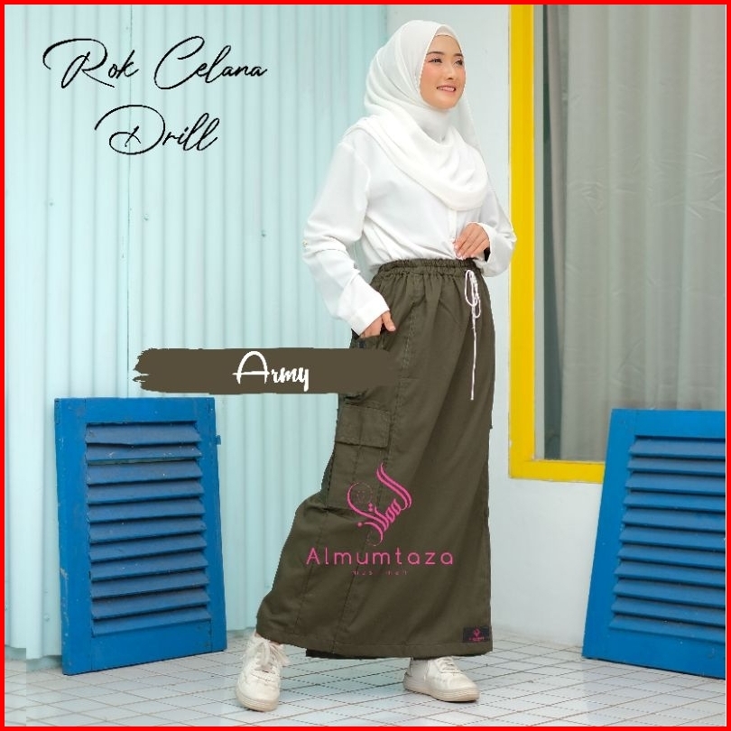 Rok Celana Drill Rok Celana Katun Drill Rok Celana Outdoor Rok Celana Saku Cargo- Almumtaza Muslimah