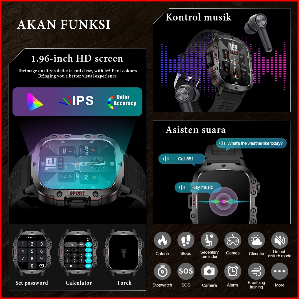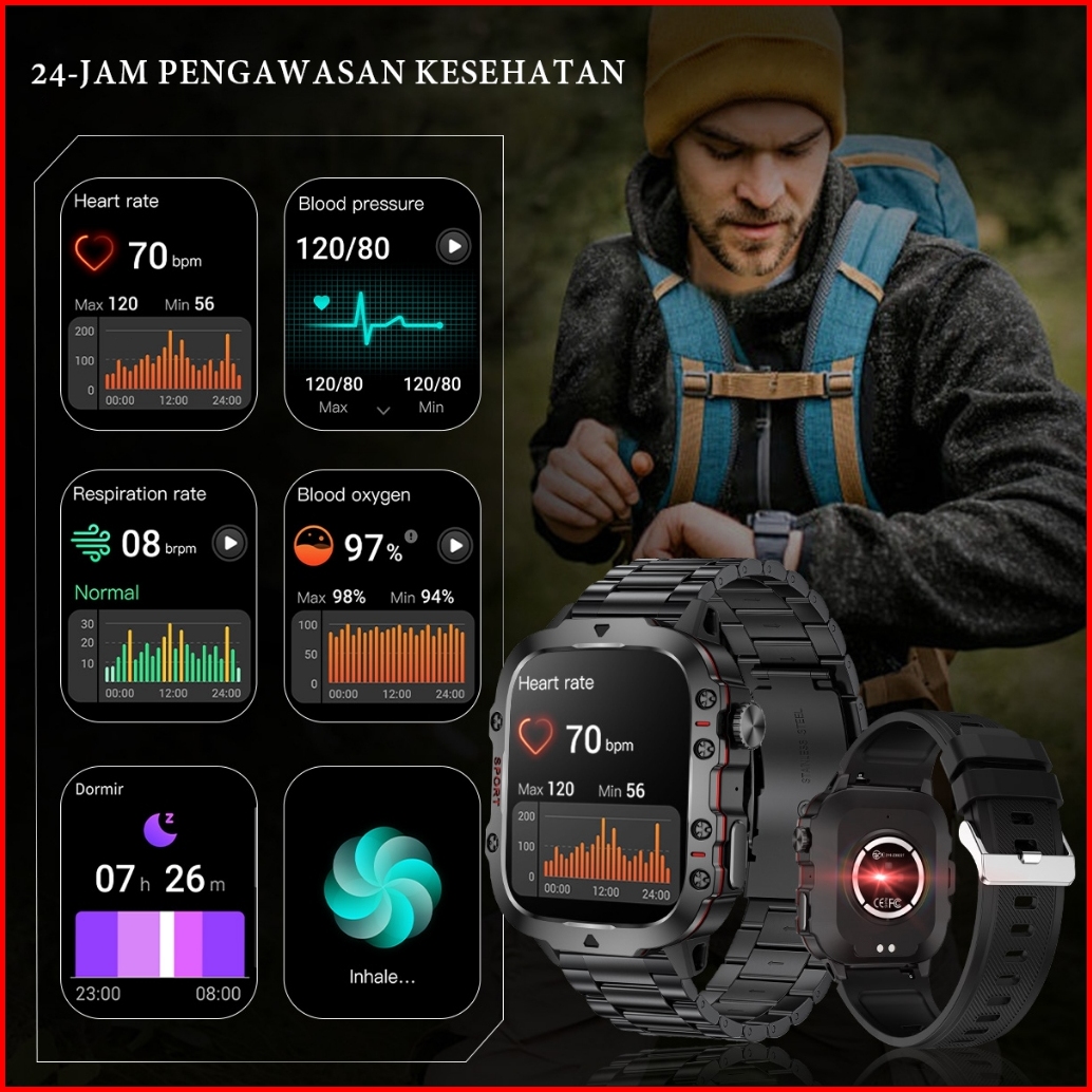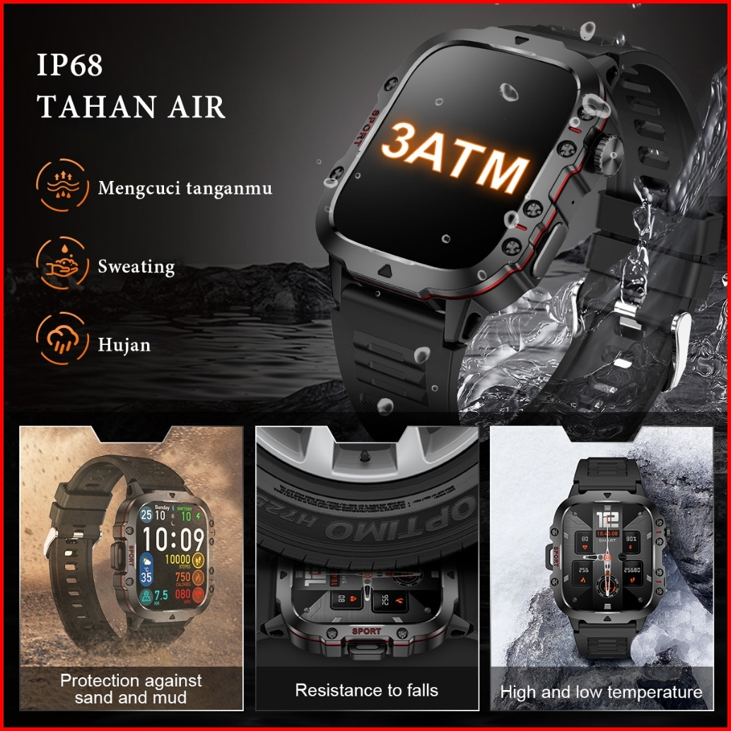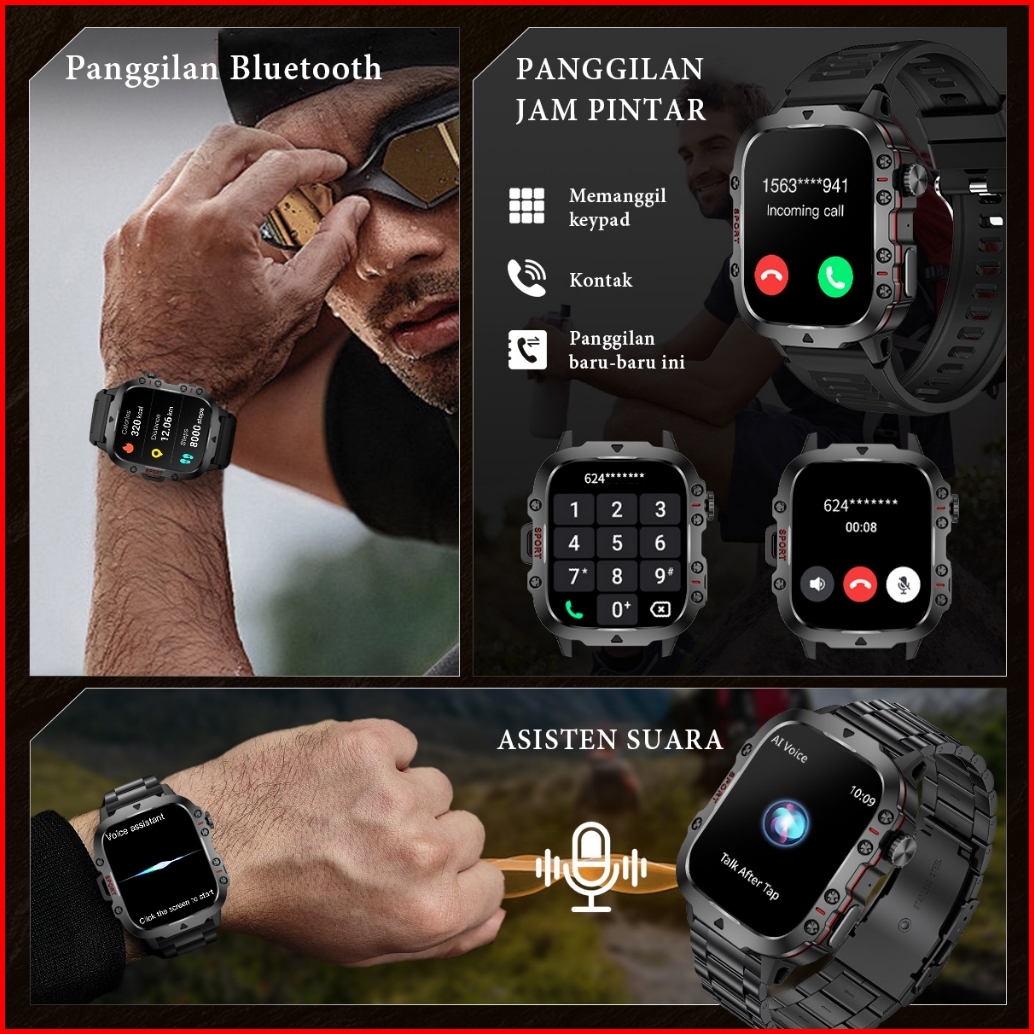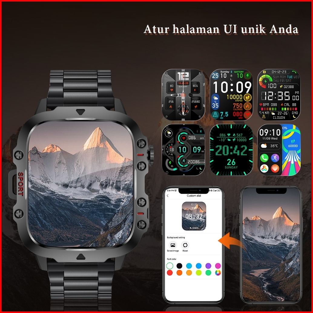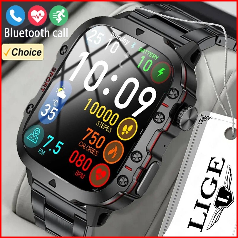 Lige Jam Tangan Pintar Luar Ruangan Gelang Pria Olahragawan 1.96 Jam Tangan Pintar Taktis Militer Kasar Untuk Ponsel Pin
