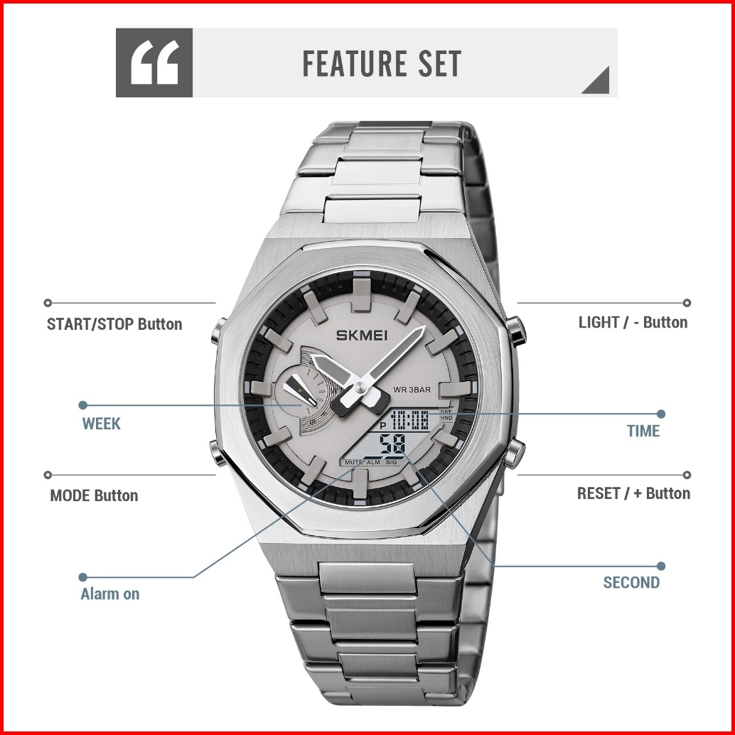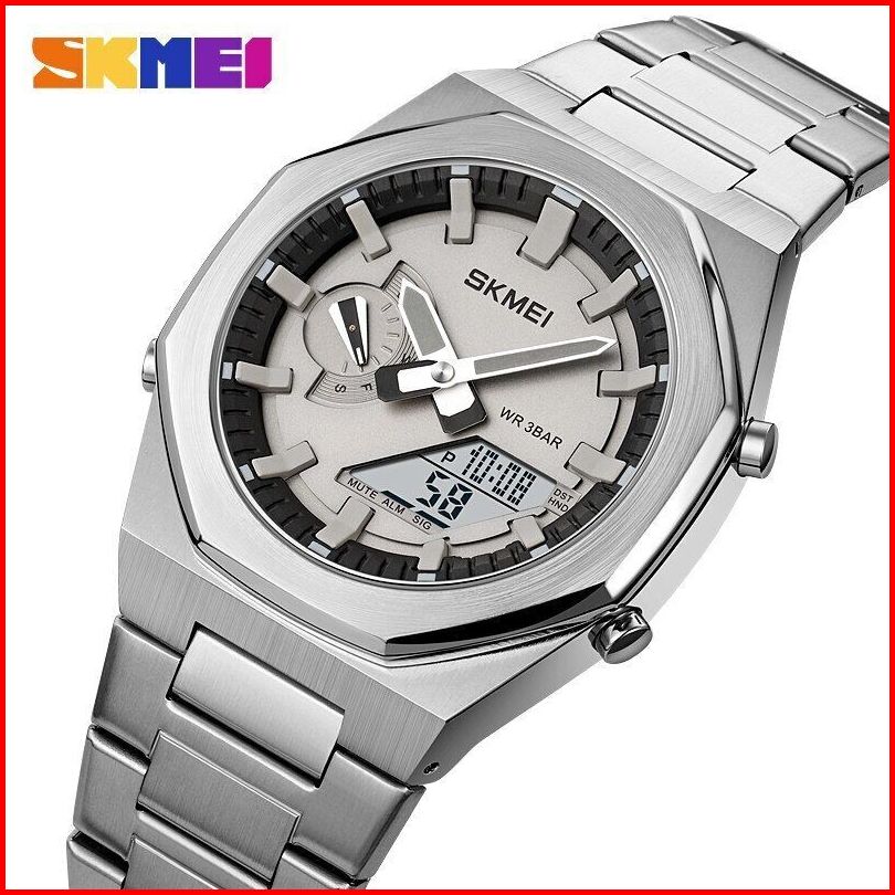 Jam Tangan Digital Analog Pria Skmei 1816 Silver Water Resistance 30m