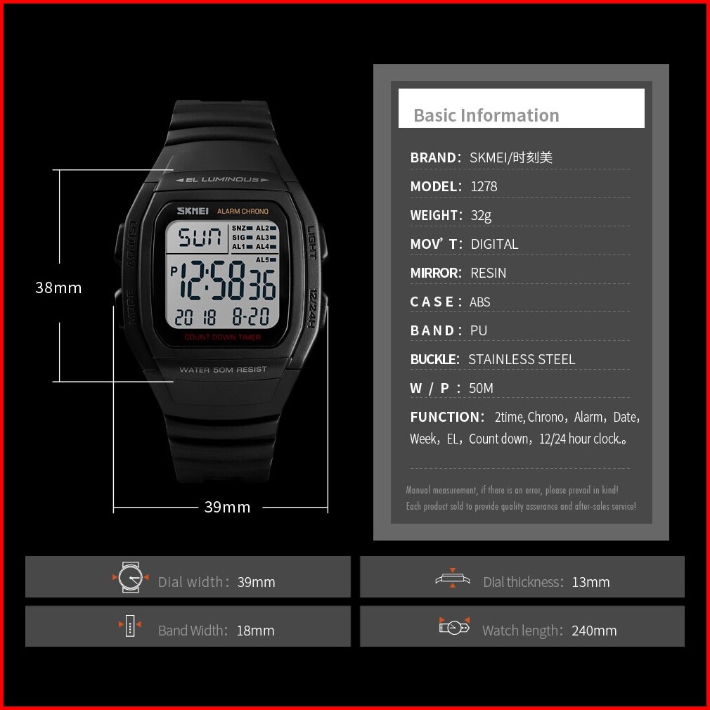 Jam Tangan Pria Digital Skmei 1278 Armygreen Water Resistant 50m