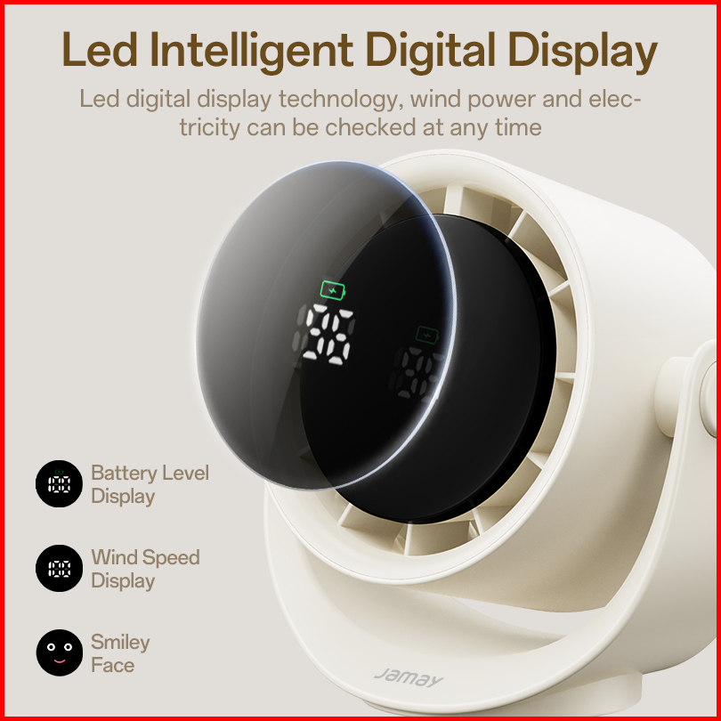 Jamay Kipas Angin 5000mah 360 Rotation Bisu Strong Wind 100 Gear Wind Speed Kipas Dinding Digital Display Adjustable Tur