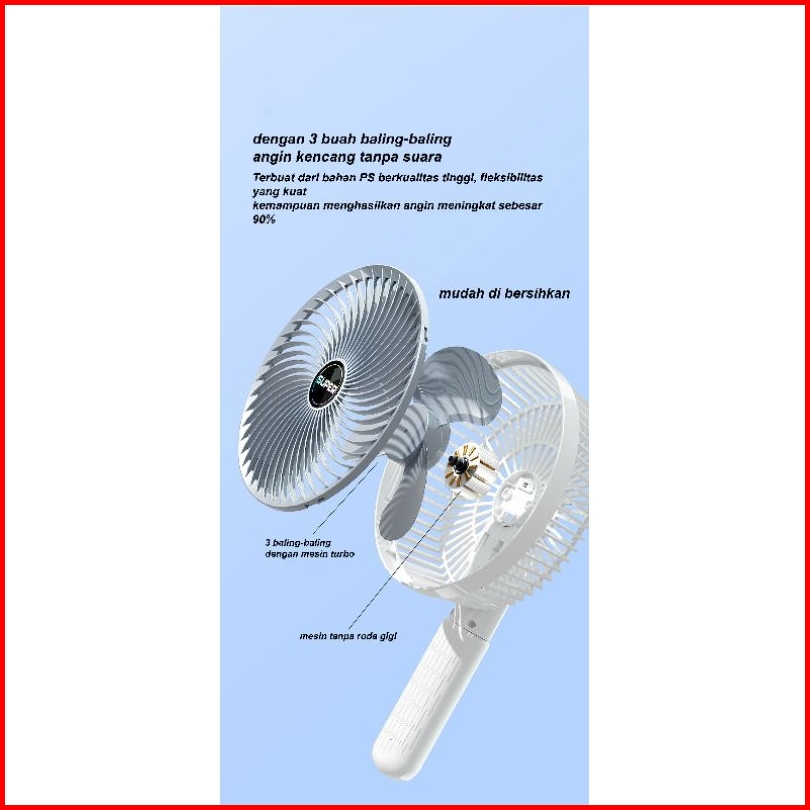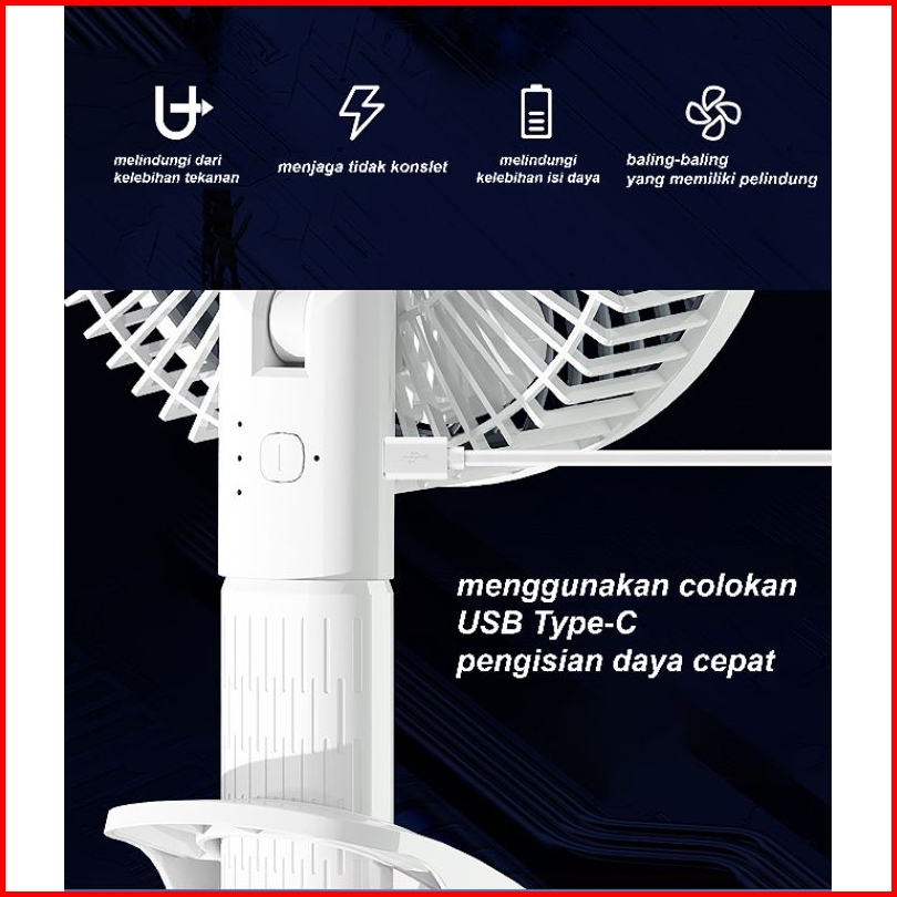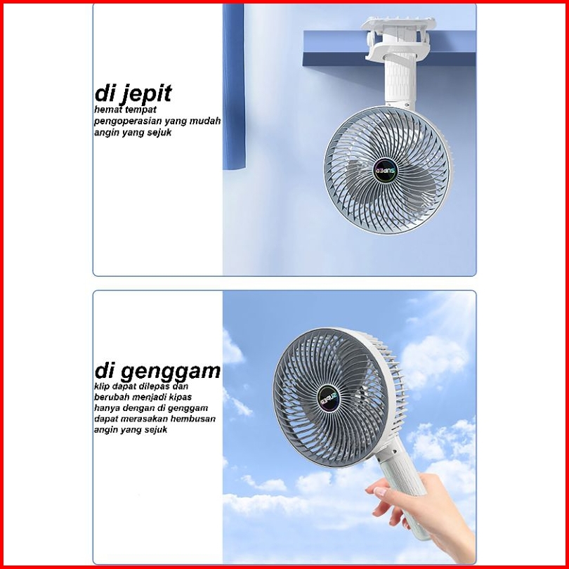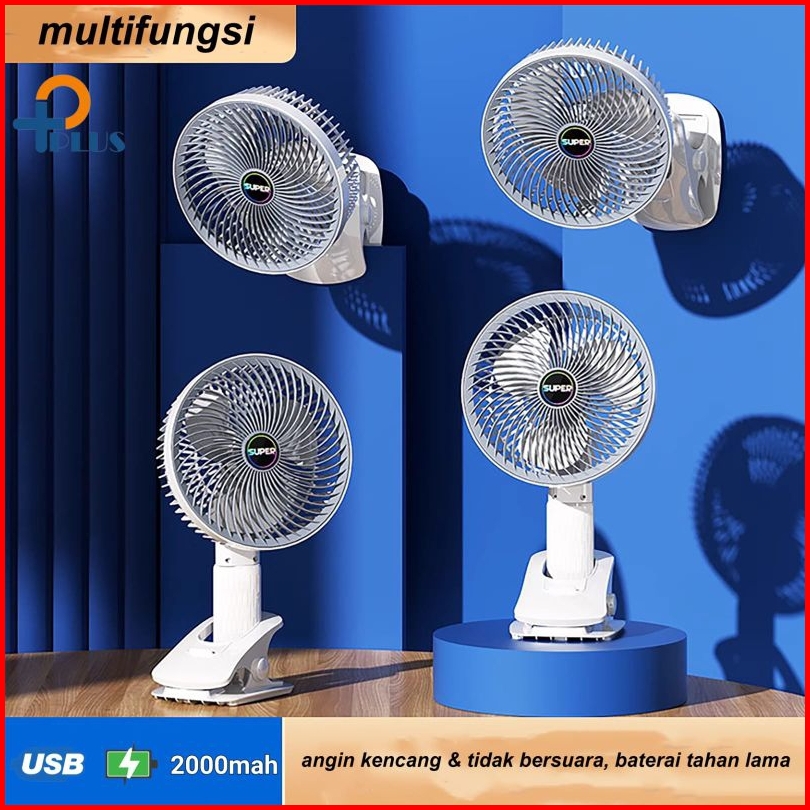 Pplus Kipas Angin Jepit Portable Mini Multi Fungsi Meja Jepit Dinding Jepit Recharge Bateria Litium 2000mah