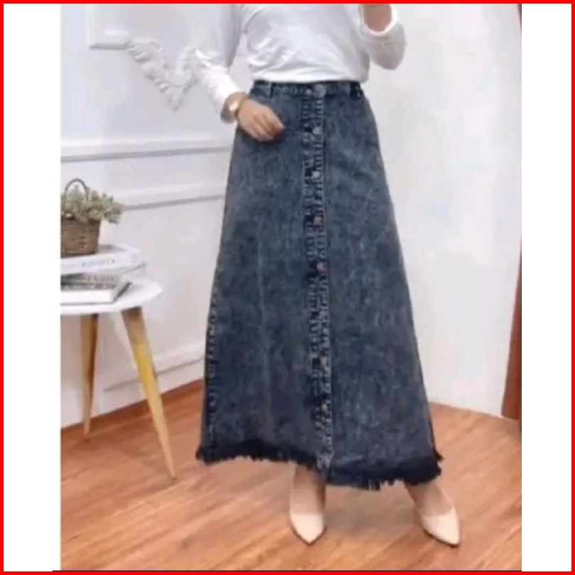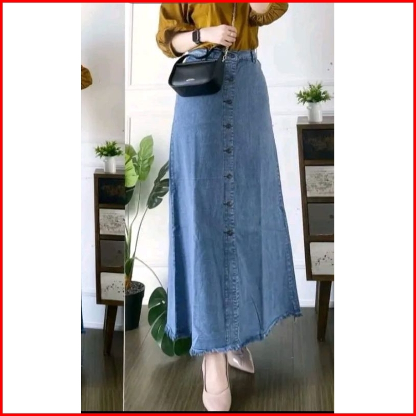 Rok Rawis Jeans Panjang Wanita Kekinian