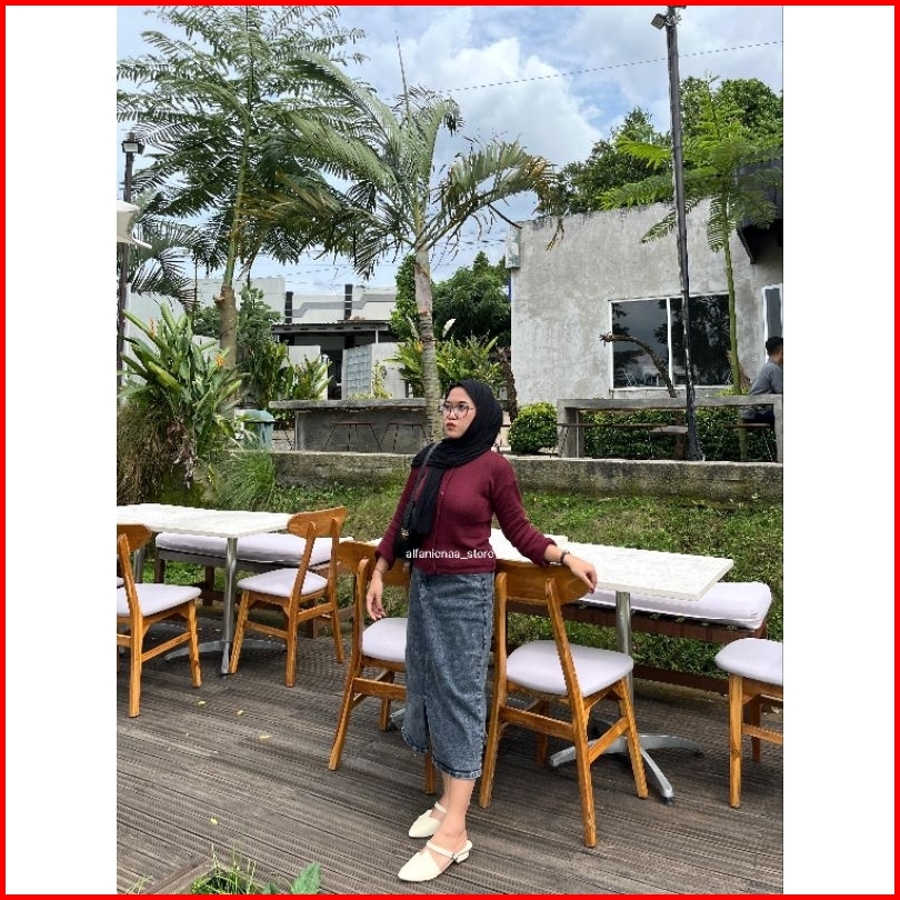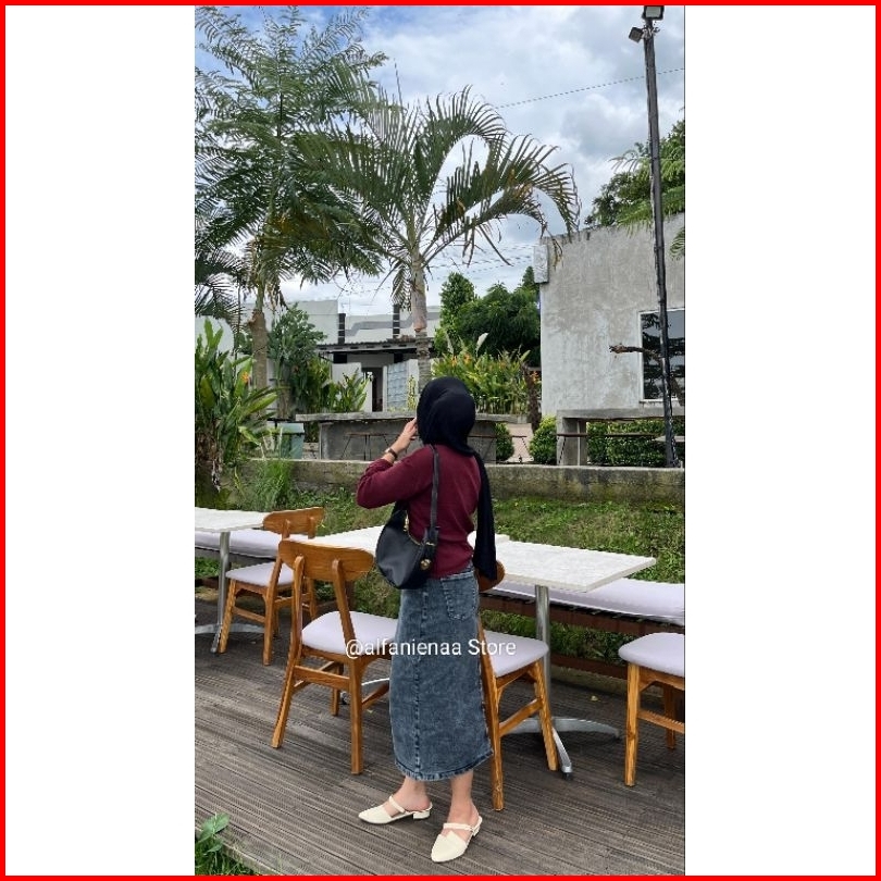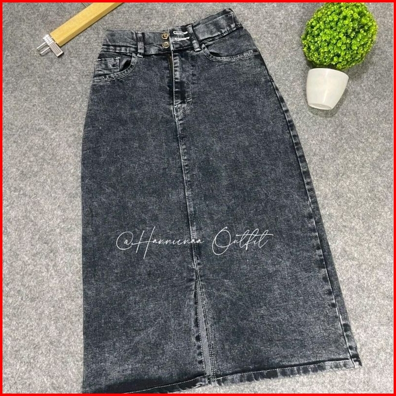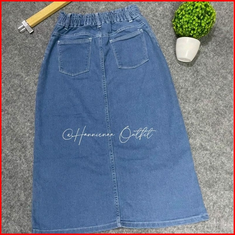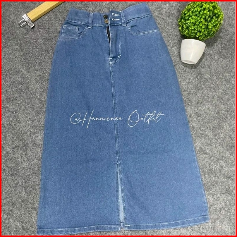 Rok Jeans Wanita Skirt Jeans Midi Rok Jeans 7 9 Rok Jeans Highwaist Kancing Depan Belahan Depan